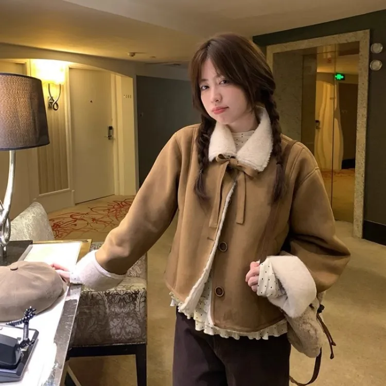 VKXOW Коричневый Женские Бархатные Куртки