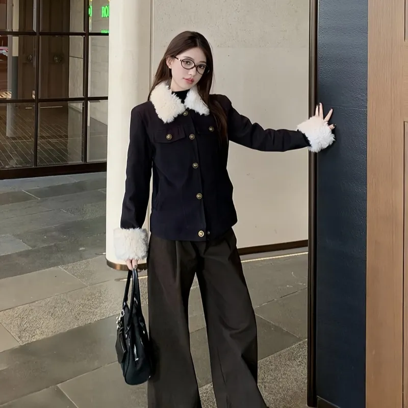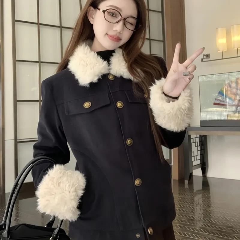 VKXOW Темно-синие женские бархатные куртки