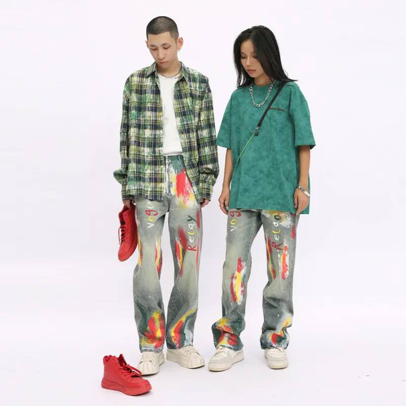 Voguo Relay Loose Fit Straight Fit Worn effect Jeans Unisex