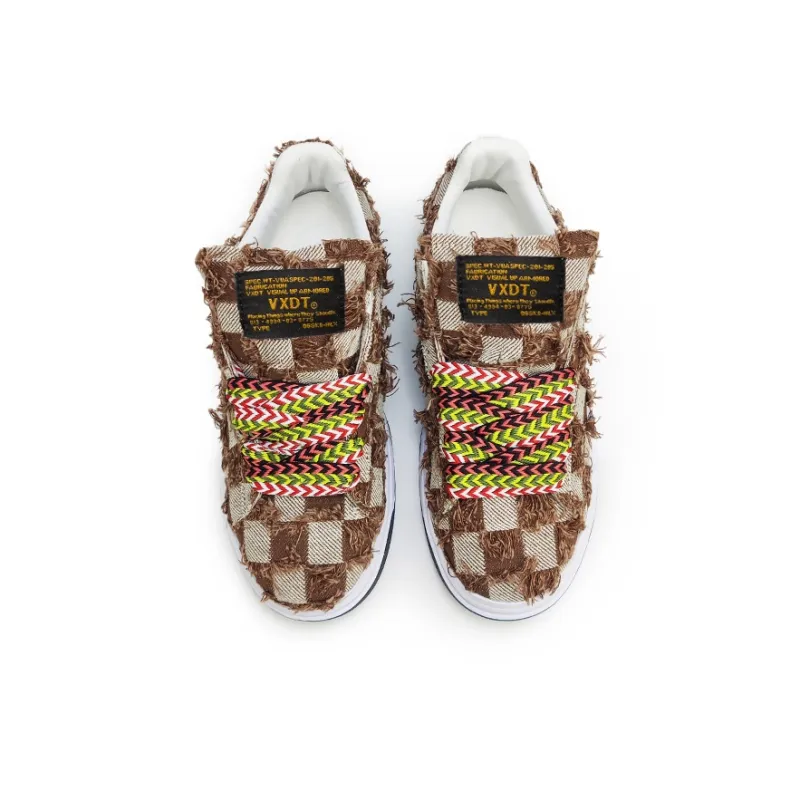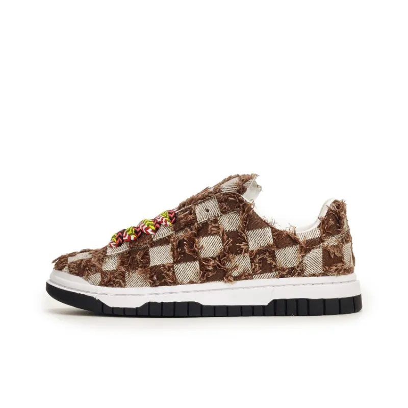 VXDT Пэчворк Шахматный узор Противоскользящие Устойчивые к истиранию Низкие Кроссовки для скейтбординга Унисекс Коричневый
