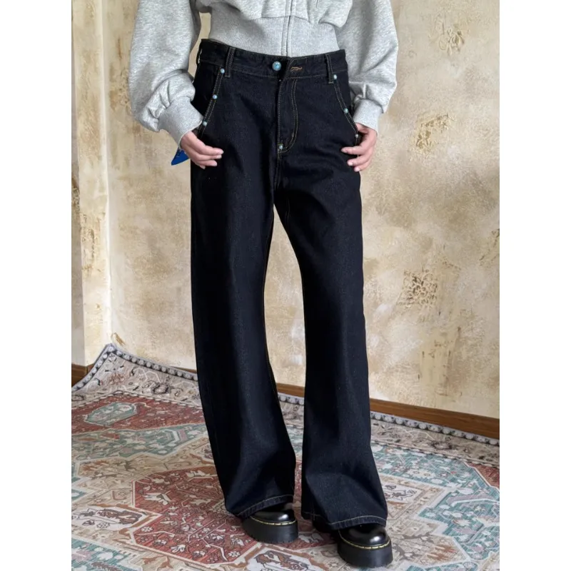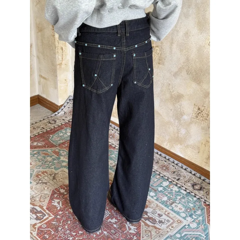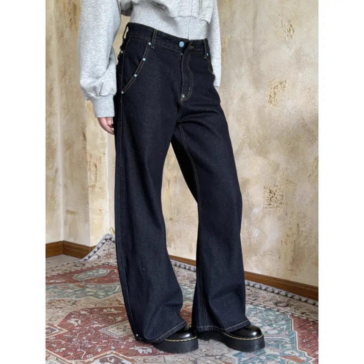 W7H1 Темно-синий Унисекс Джинсы