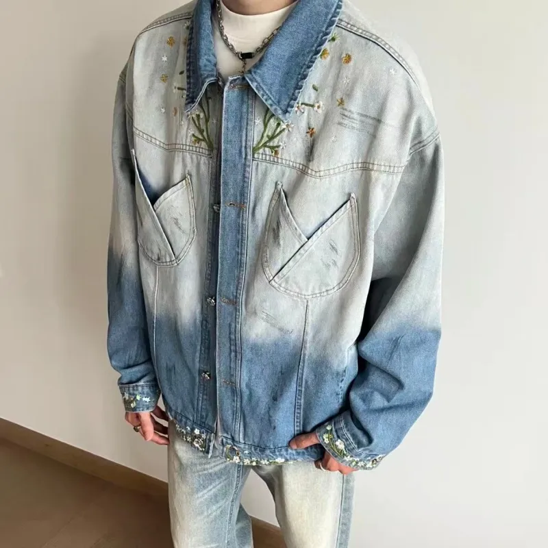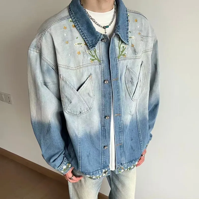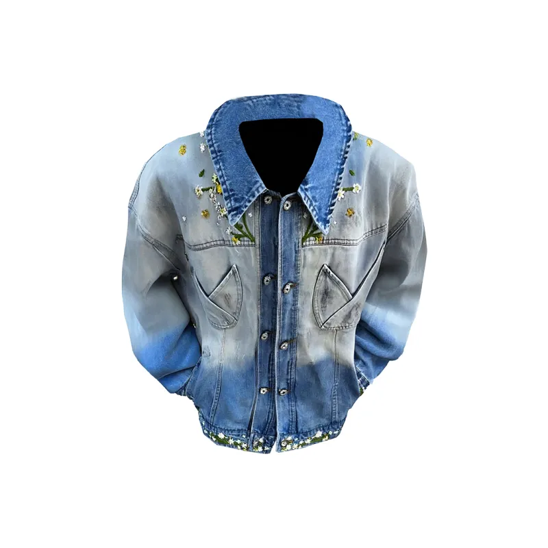 W9H2 Синий [Утонченный Цветочный Вышивка] Унисекс Бейсбольные Джерси