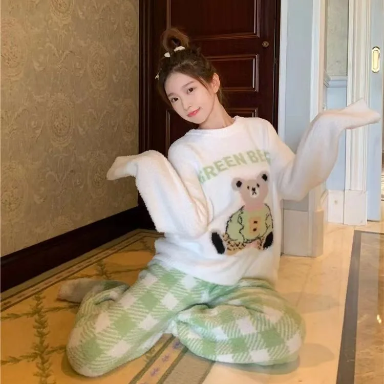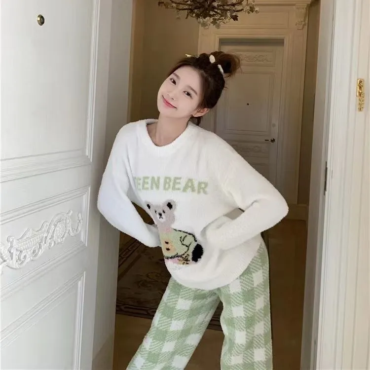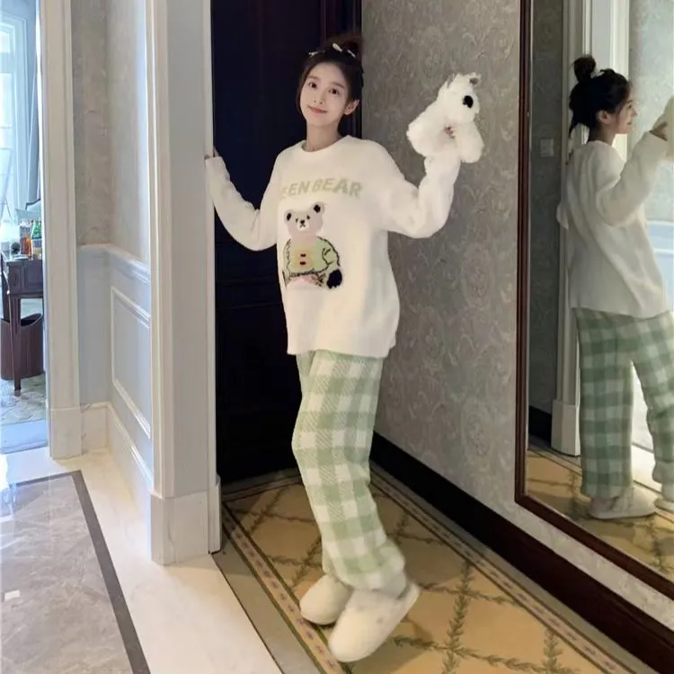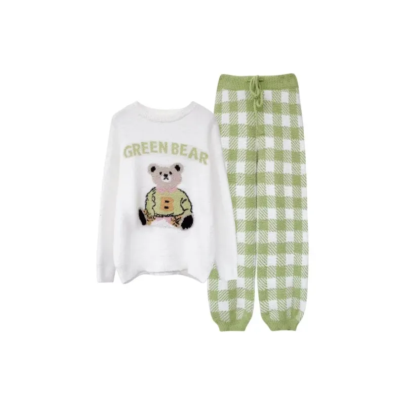 WANANNI Пижамный комплект Женский Белый Зеленый