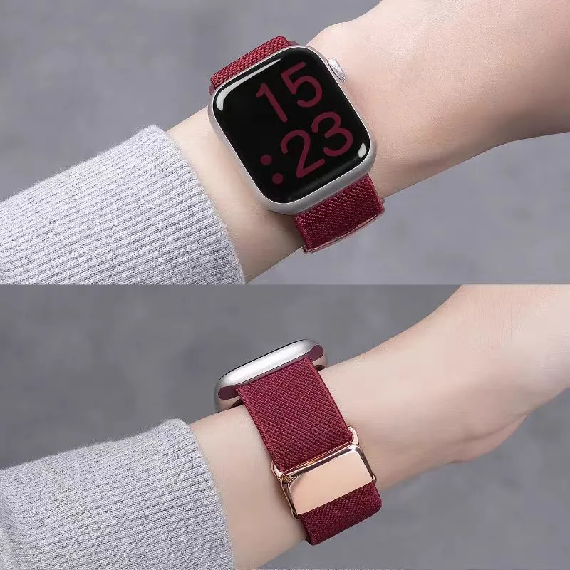 Ремешок Цвет:Бордовый - Магнитный - Пряжка - Эластичная лента