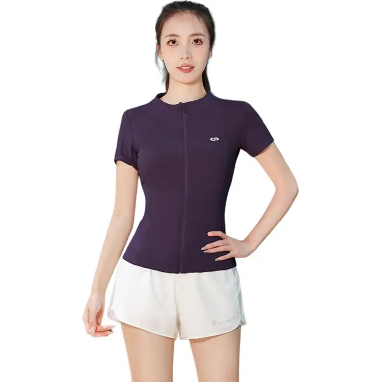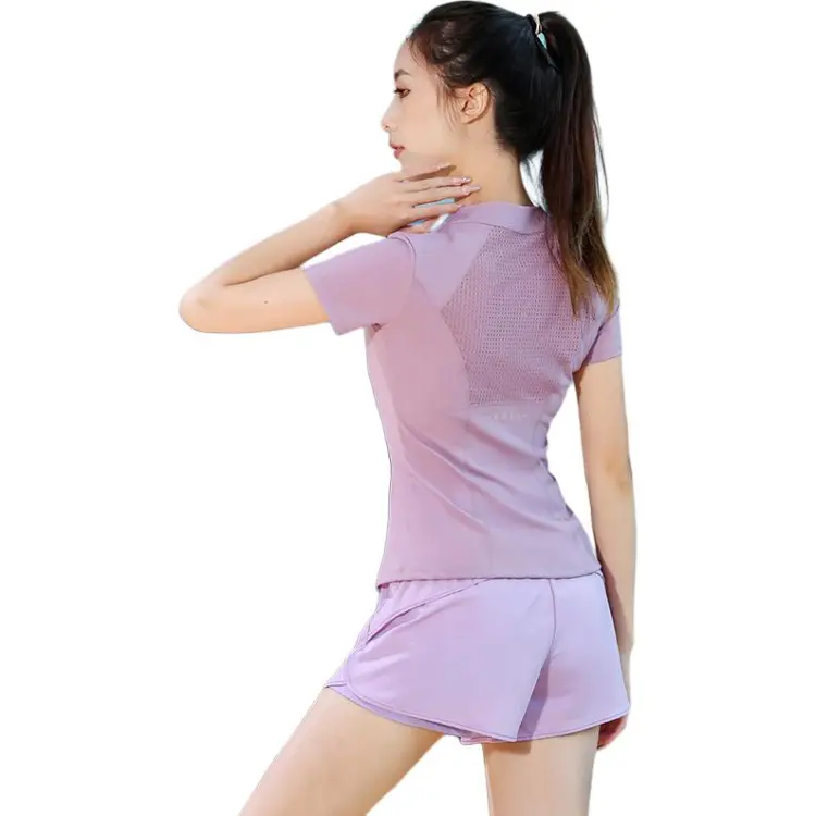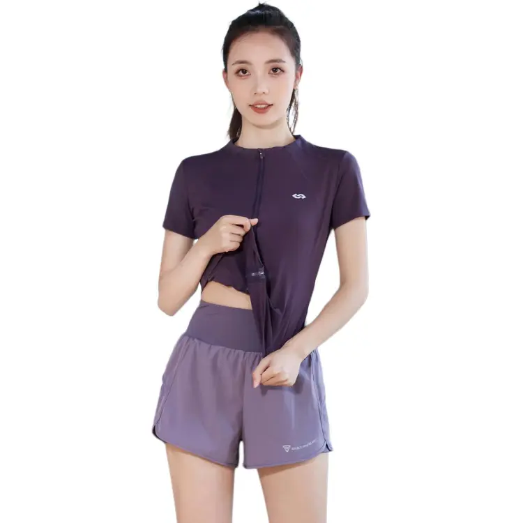 Темно-фиолетовый комплект из двух предметов (с короткими рукавами) - серый, коричневый и фиолетовый штаны