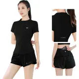 Комплект:Черный комплект из двух предметов с короткими рукавами (черные штаны)