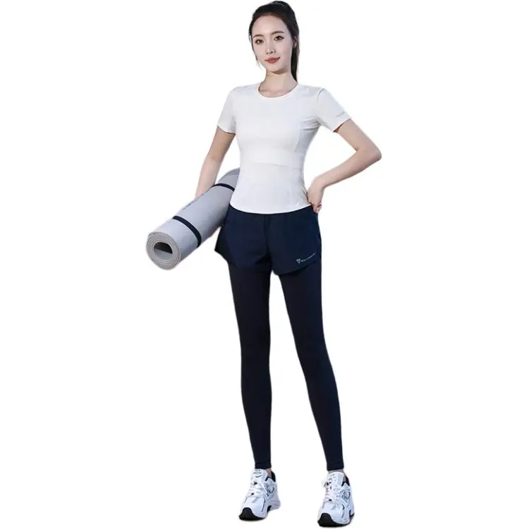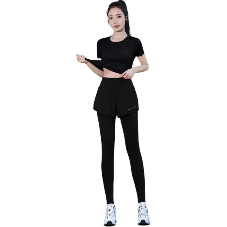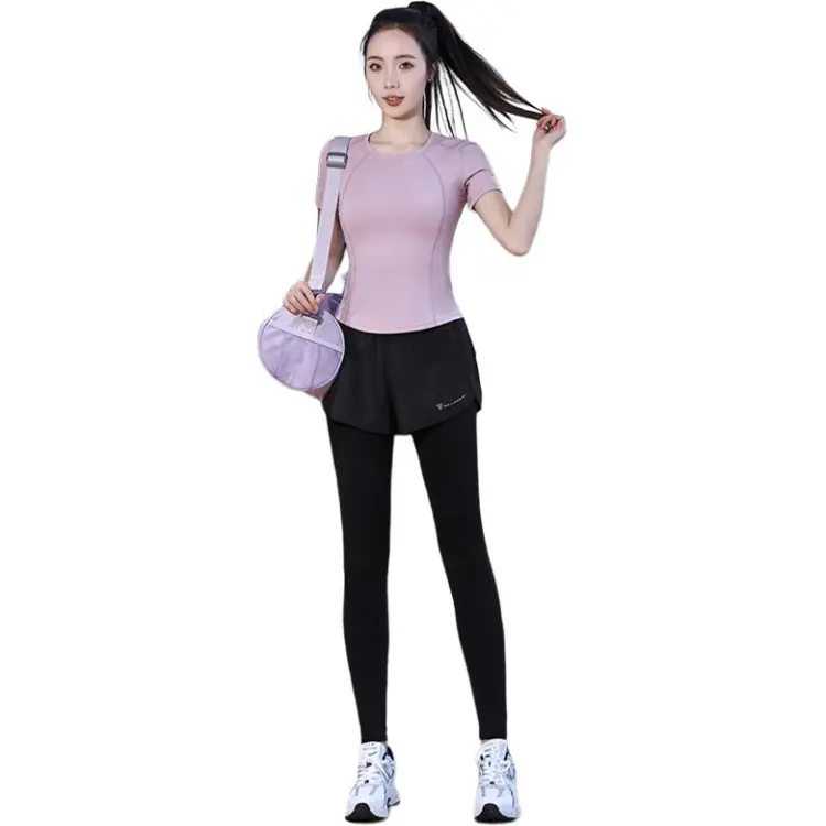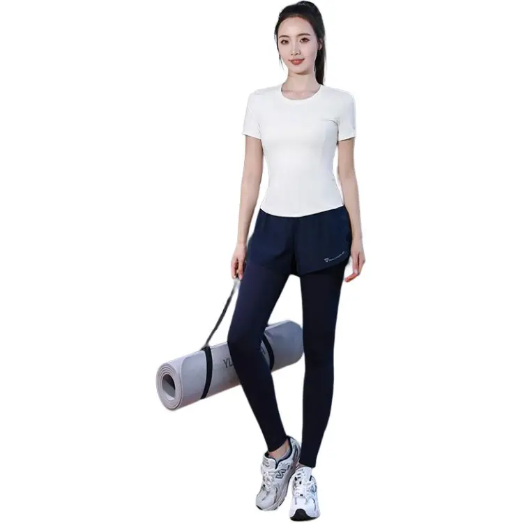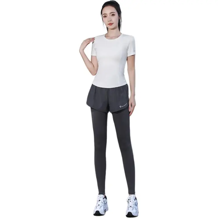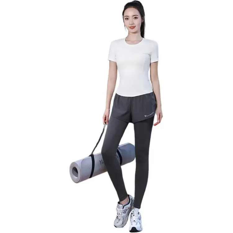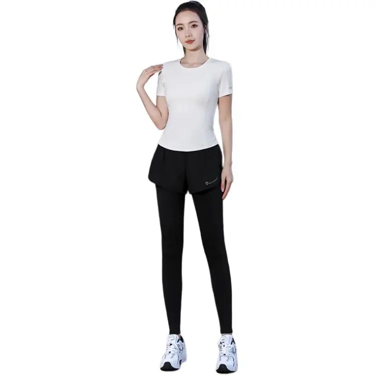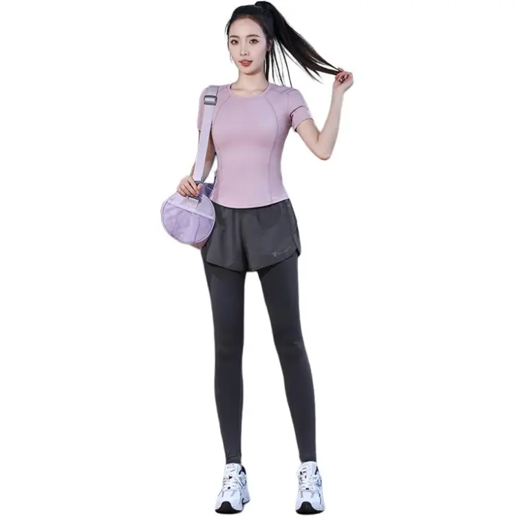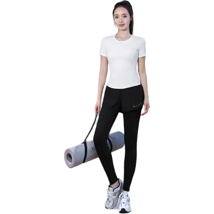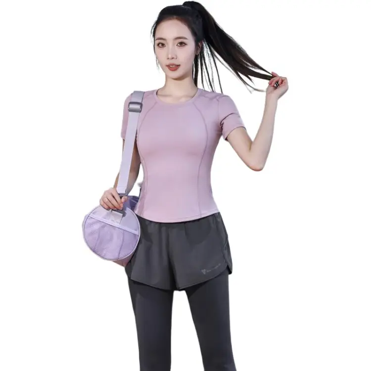 WANTINGDINUO Фитнес Комплект Тонкий Задний карман Эластичный Свободный крой Короткий рукав Т-рубашка Топ Женский