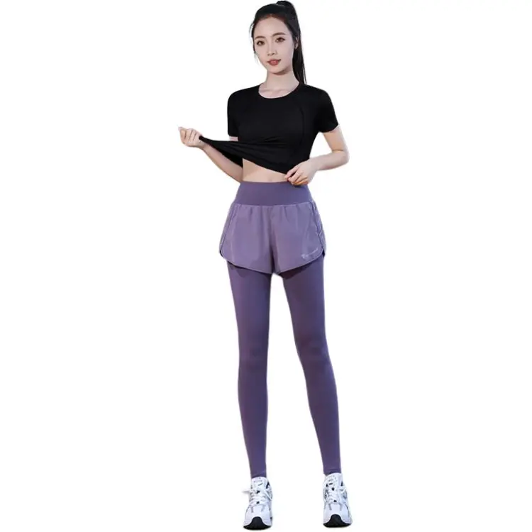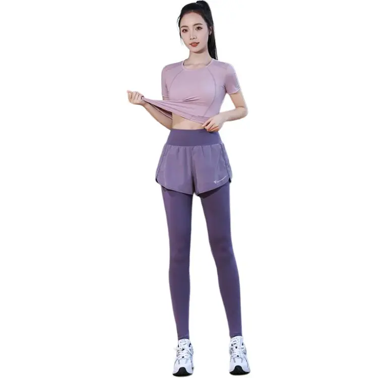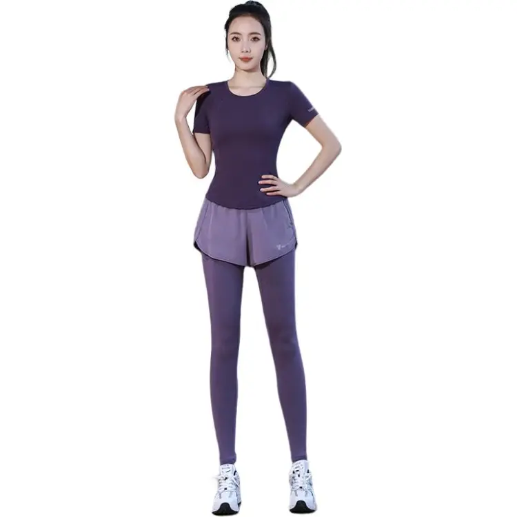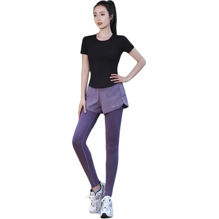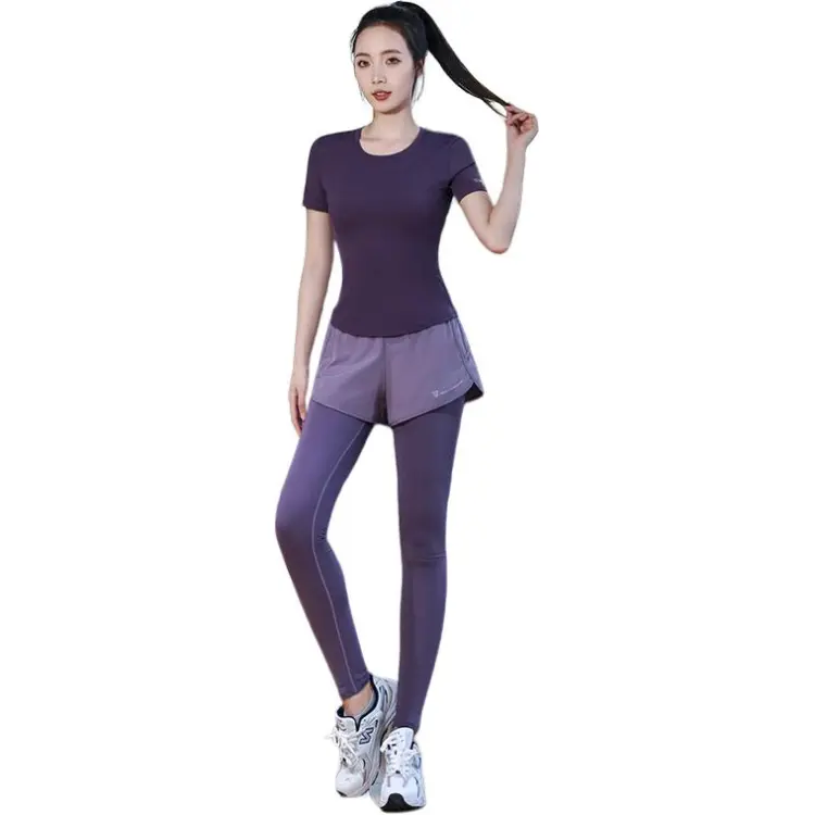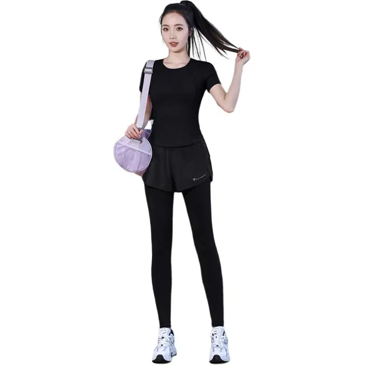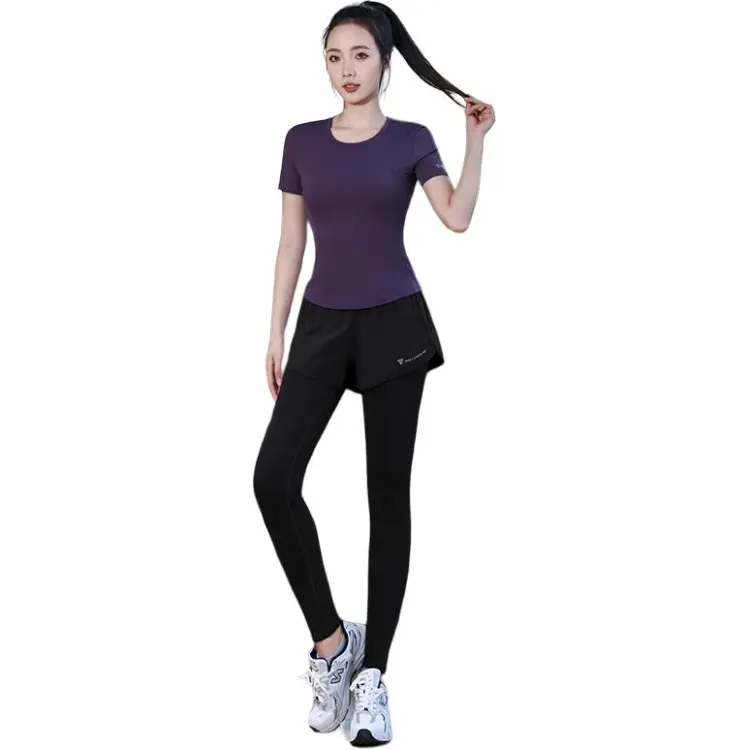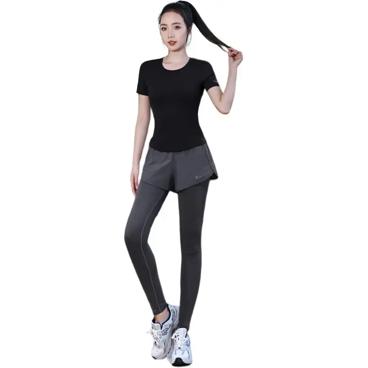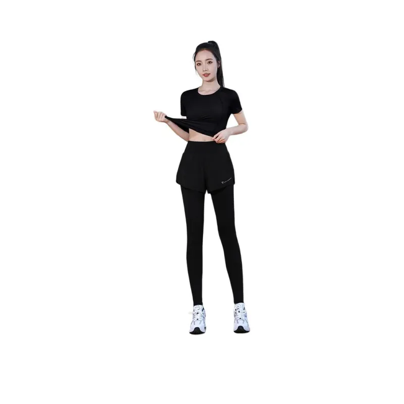WANTINGDINUO Фитнес Комплект Тонкий Задний карман Эластичный Свободный крой Короткий рукав Т-рубашка Топ Женский