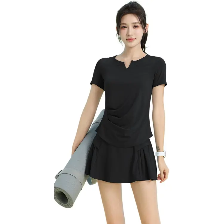 Черный комплект из двух предметов с короткими рукавами (черные штаны)