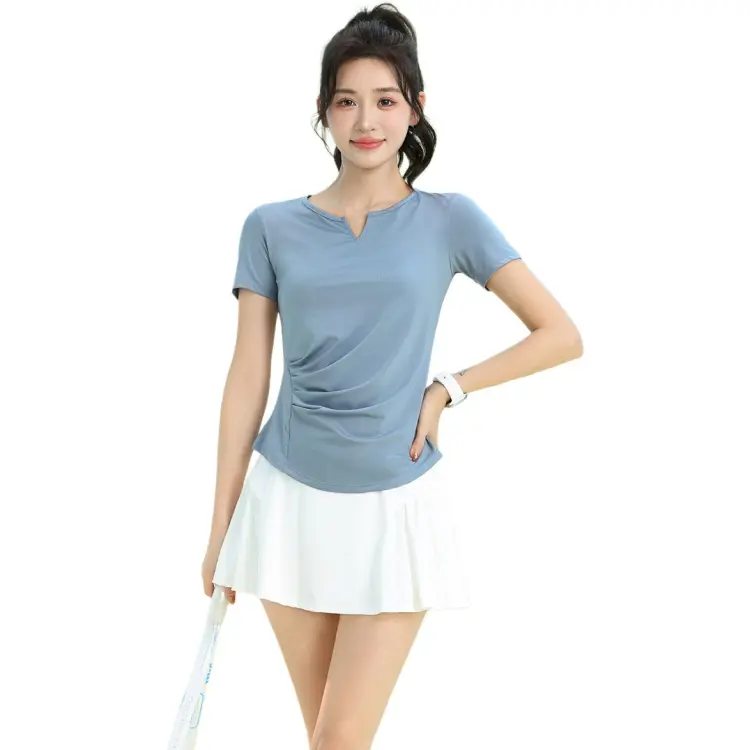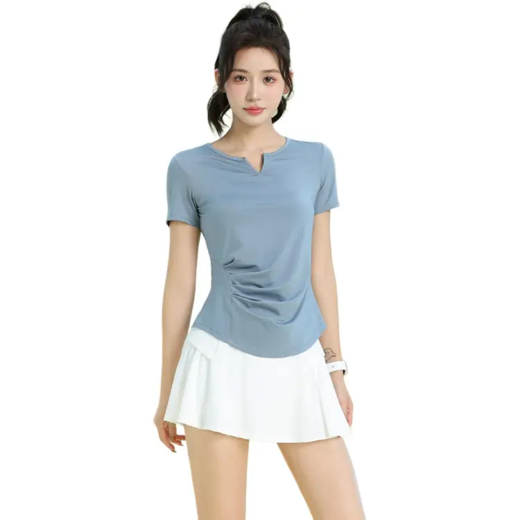 Синий комплект из двух предметов с короткими рукавами (белые штаны)