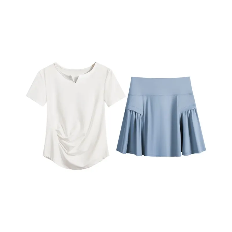 Комплект:Белый комплект из двух предметов с короткими рукавами (синие штаны)