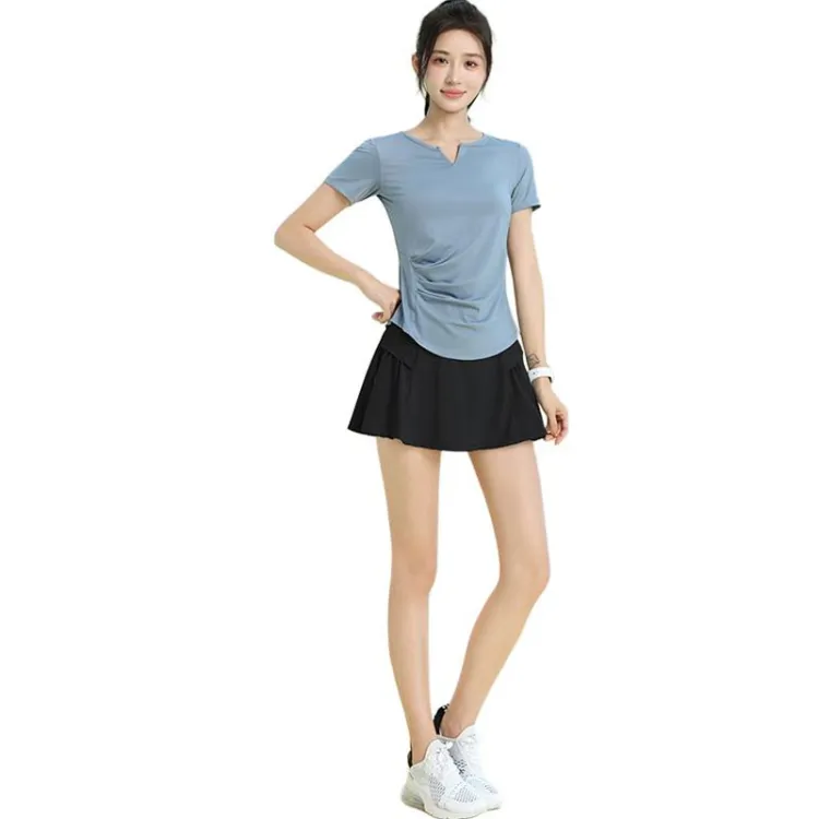 Синий комплект из двух предметов с короткими рукавами (черные штаны)