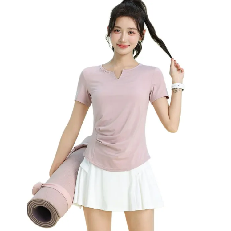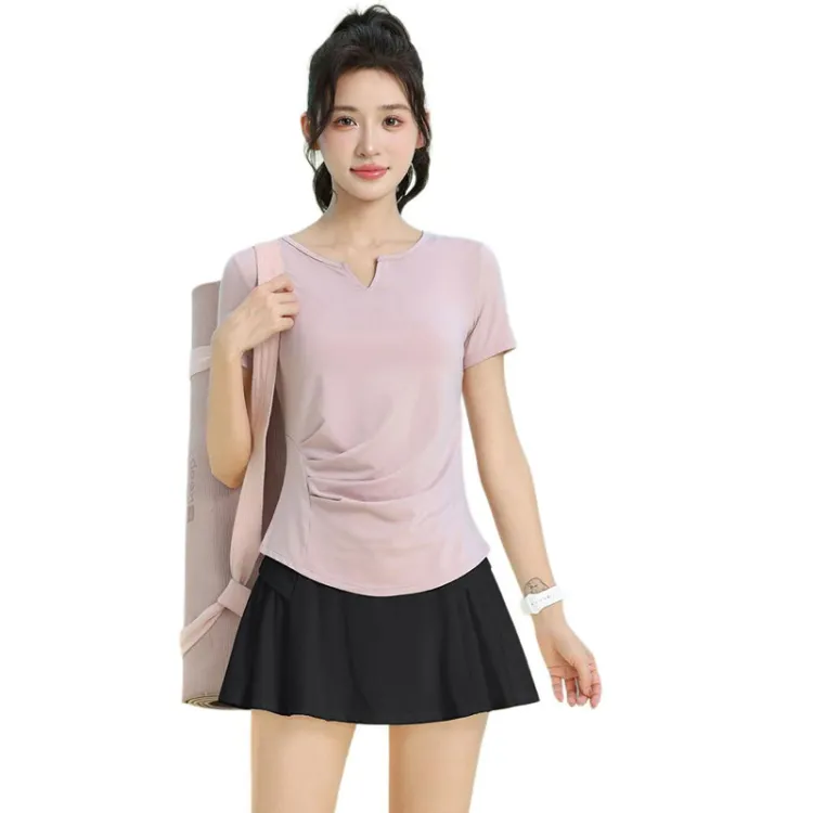 Розовый комплект из двух частей с коротким рукавом (белые брюки)