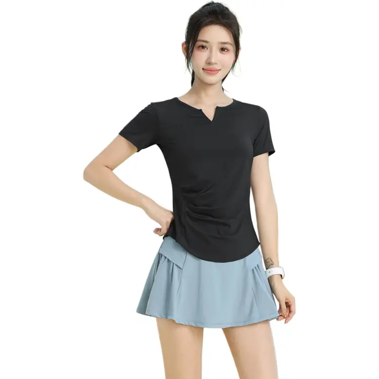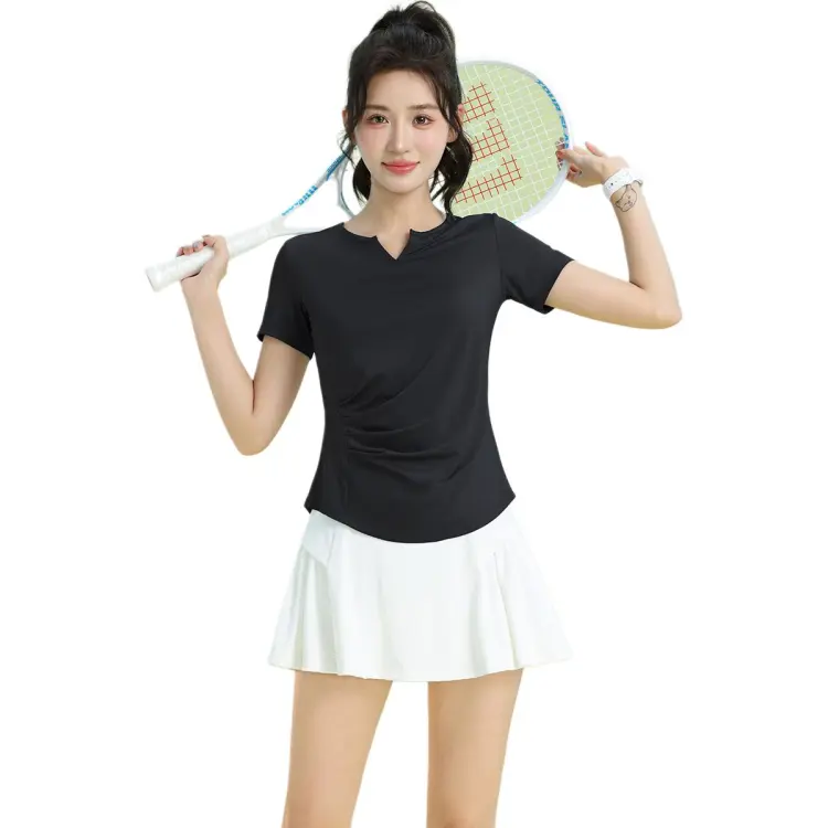 Чёрный комплект из двух частей с короткими рукавами (белые брюки)