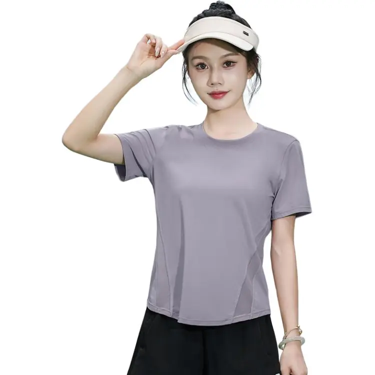 WANTINGDINUO Спортивная одежда Круглый вырез T-рубашка Марафон Отводящий пот Топ Большой размер Свободный крой Женский
