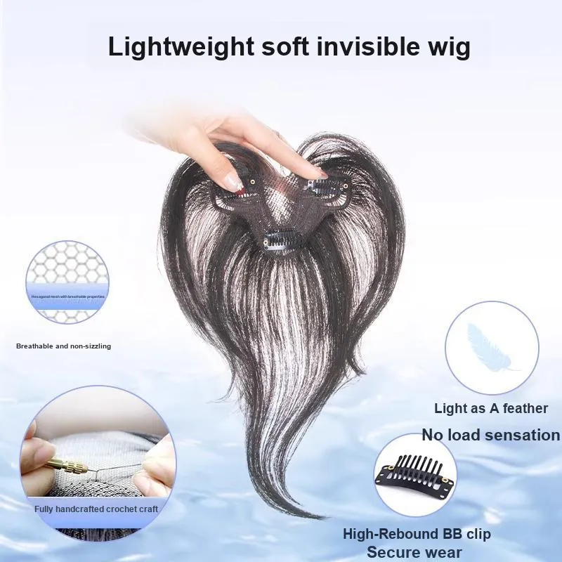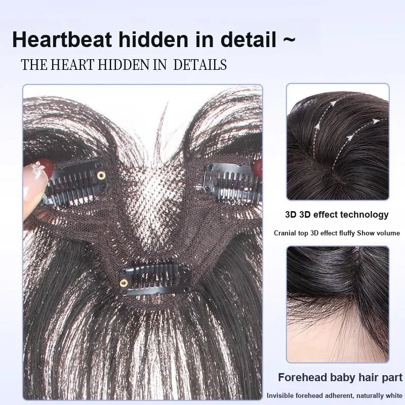 [Двойной S-образный зажим] Французская лысина - Натуральный - Настоящие волосы - Смесь шелка