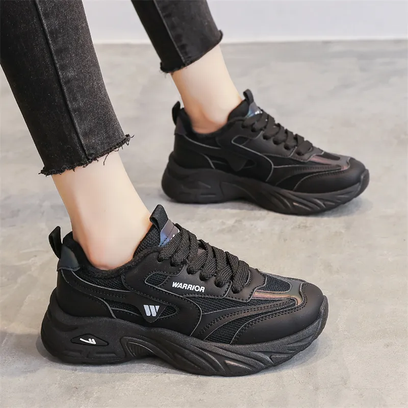 Warrior Low-Top Толстая подошва Черные флисовые с подкладкой Унисекс