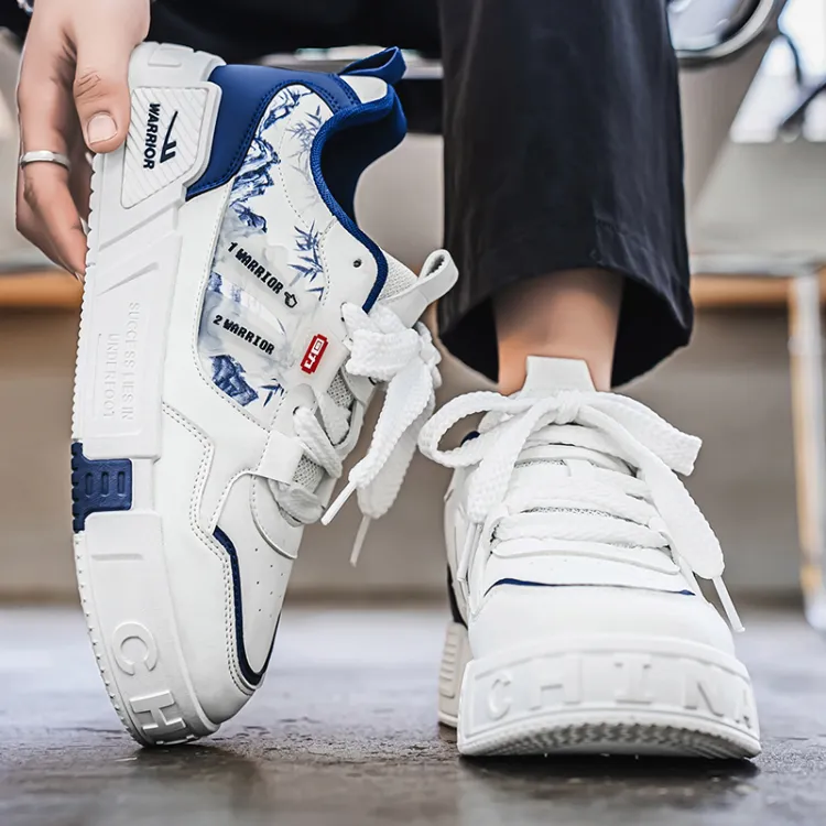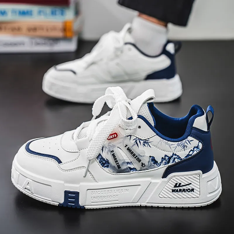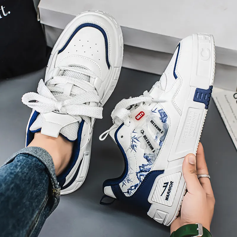 Warrior Покрытие Slip-Resistant и Abrasion-Resistant Низкие Кроссовки для Скейтбординга Мужские Белые Темно-Синие