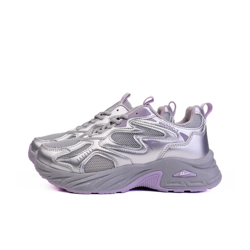 Warrior Амортизация Устойчивость к истиранию Дышащий Низкий Топ Кроссовки для бега Женские Серый Серебряный Фиолетовый