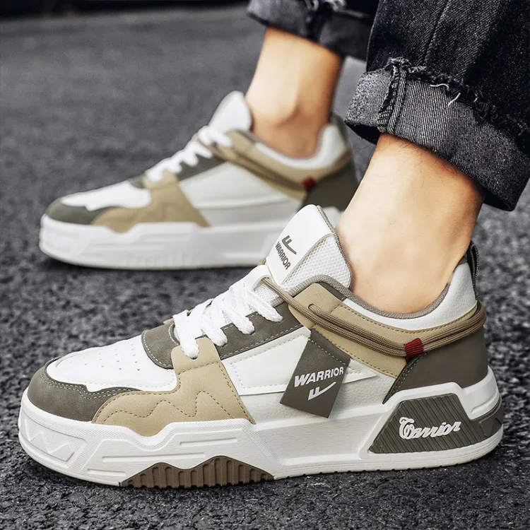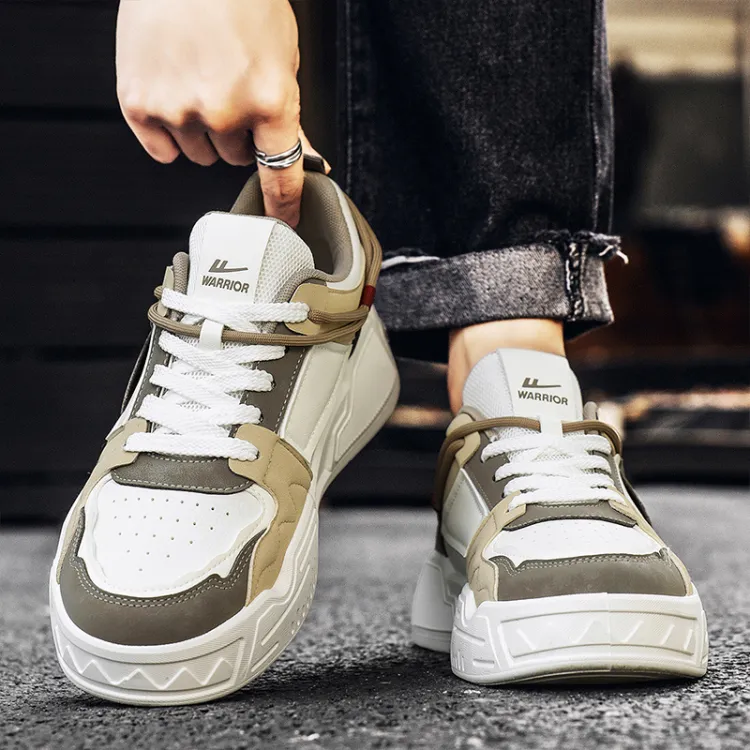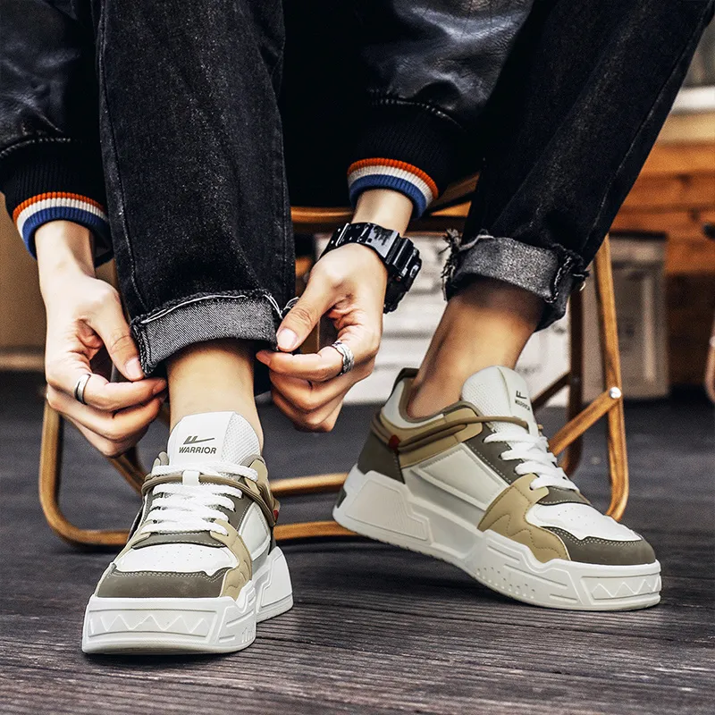 Warrior Амортизация Высота Увеличение Устойчивость к Износу Дышащие Низкие Кроссовки для Скейтбординга Мужские Белый Коричневый Хаки
