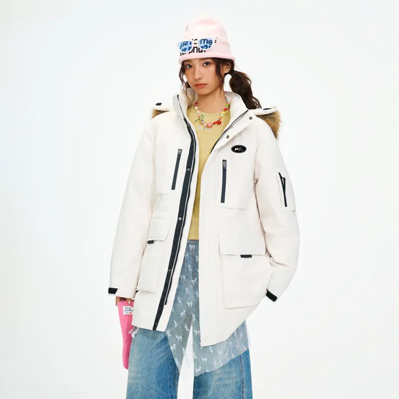 Цвет:Тёмный кремовый белый (съемный капюшон, значок DIY)