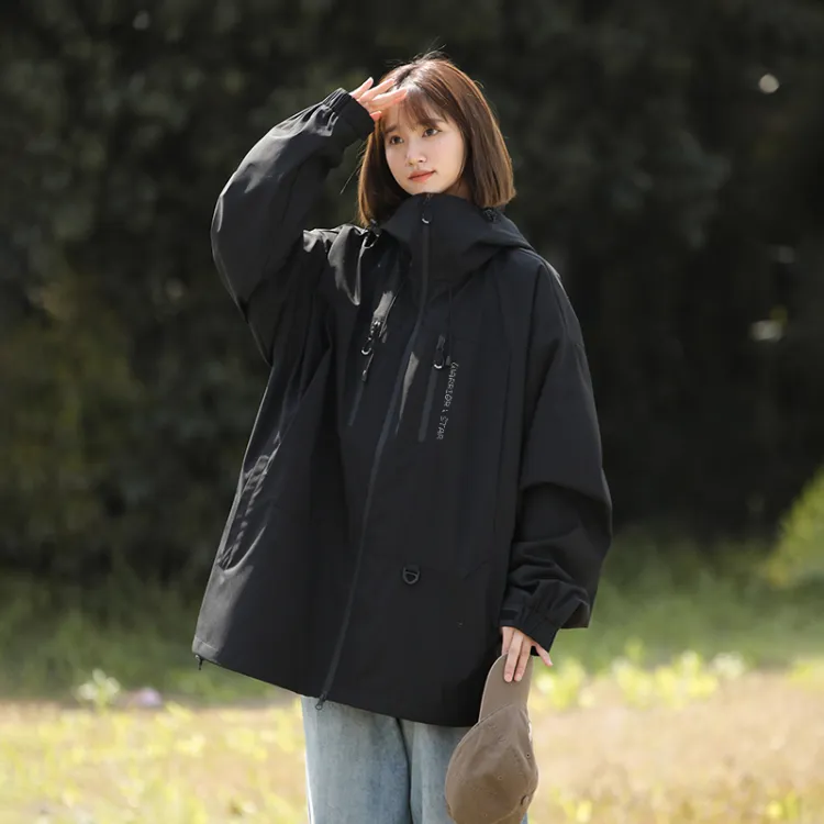 Цвет:Чёрный Розовый (Ветрозащитный и Водонепроницаемый Одиночная Ветровка)