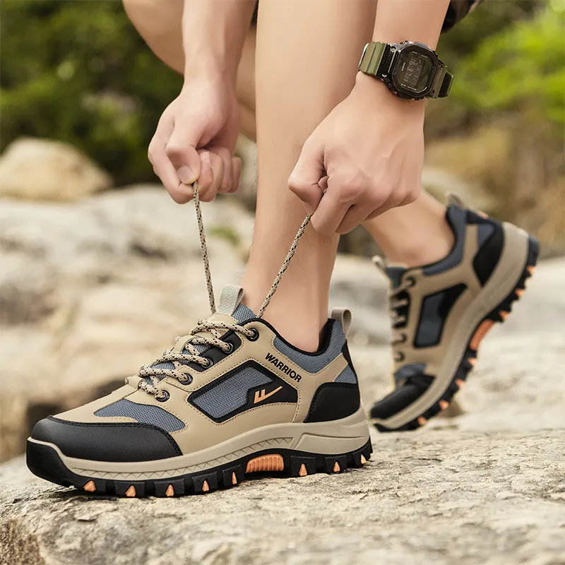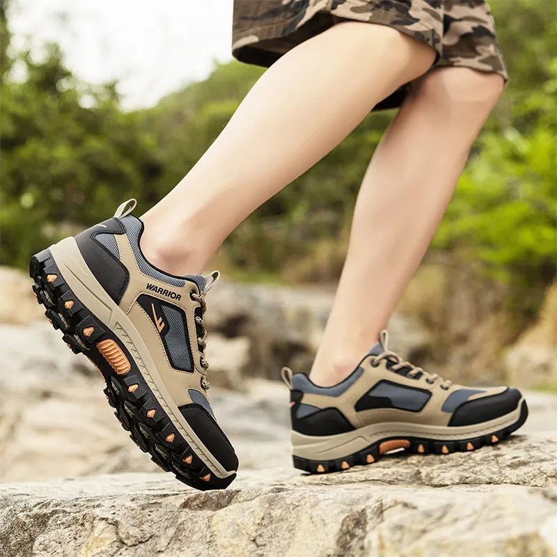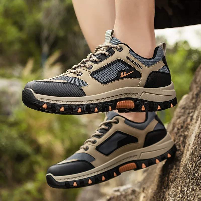 Warrior Slip-resistant Abrasion-resistant Breathable Low-Top Hiking Shoes Men's Khaki Gray Black Warrior Противоскользящие Устойчивые к износу Дышащие Низкие Кеды для походов Мужские Хаки Серый Черный