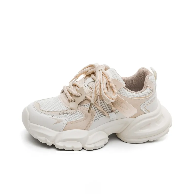 Warrior Аbrasion Resistant Легкий Увеличение Высоты Низкий Топ Кроссовки с Толстой Подошвой Женские Хаки-Бежевый