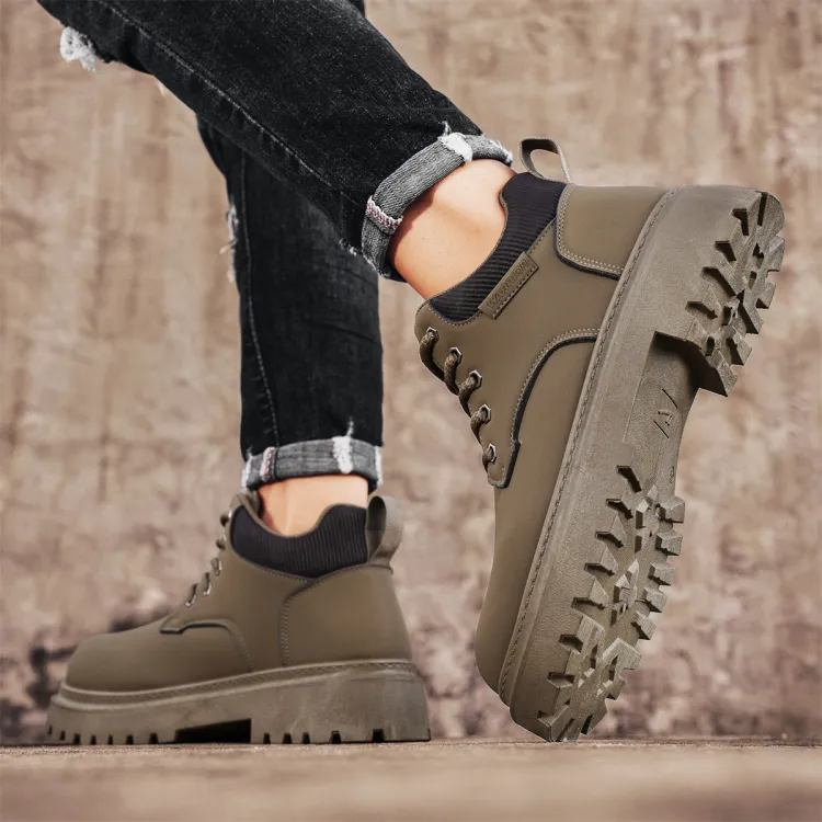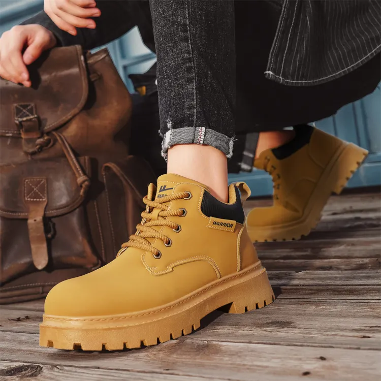 Warrior Желтые ботинки однотонные британский стиль 8 см ботинок Martin мужской