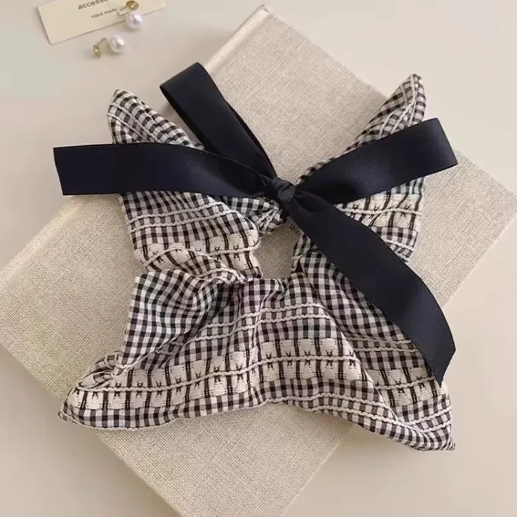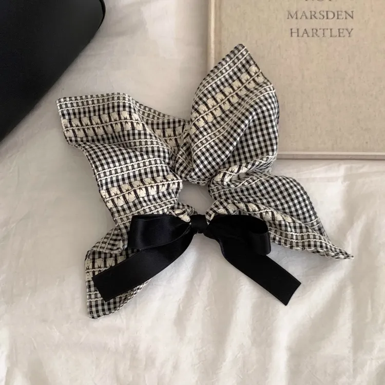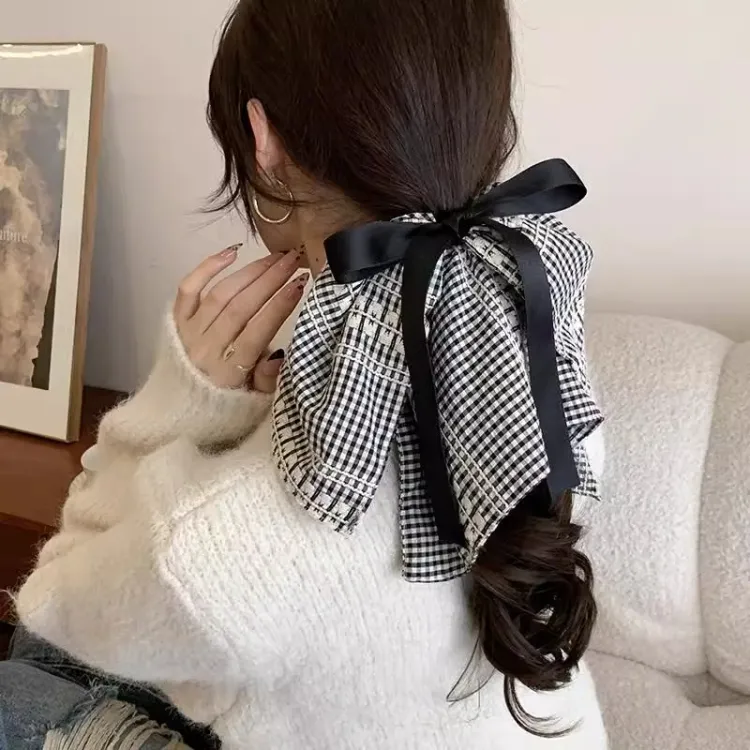 Стиль:Черно-белая клетка, бант, лента, резинка для волос Trumpets