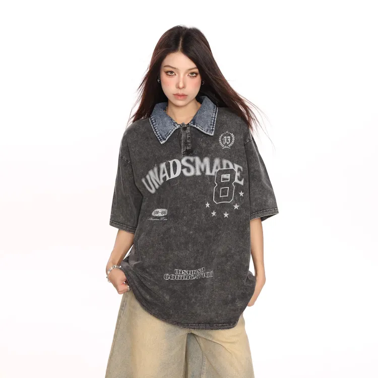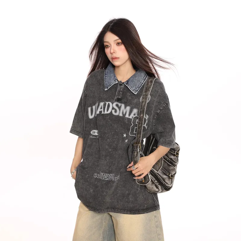 WAYHWEI Т-рубашка с оборванным рукавом женская вымытая черная