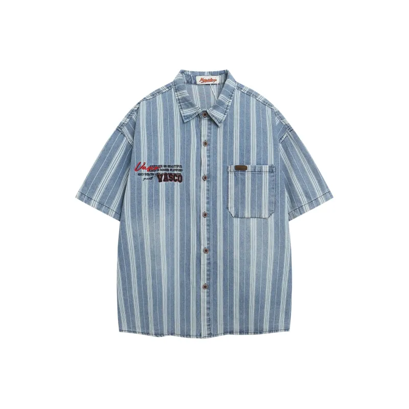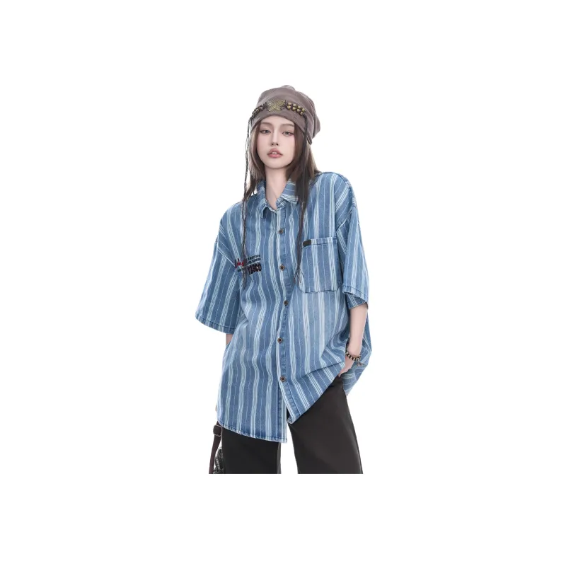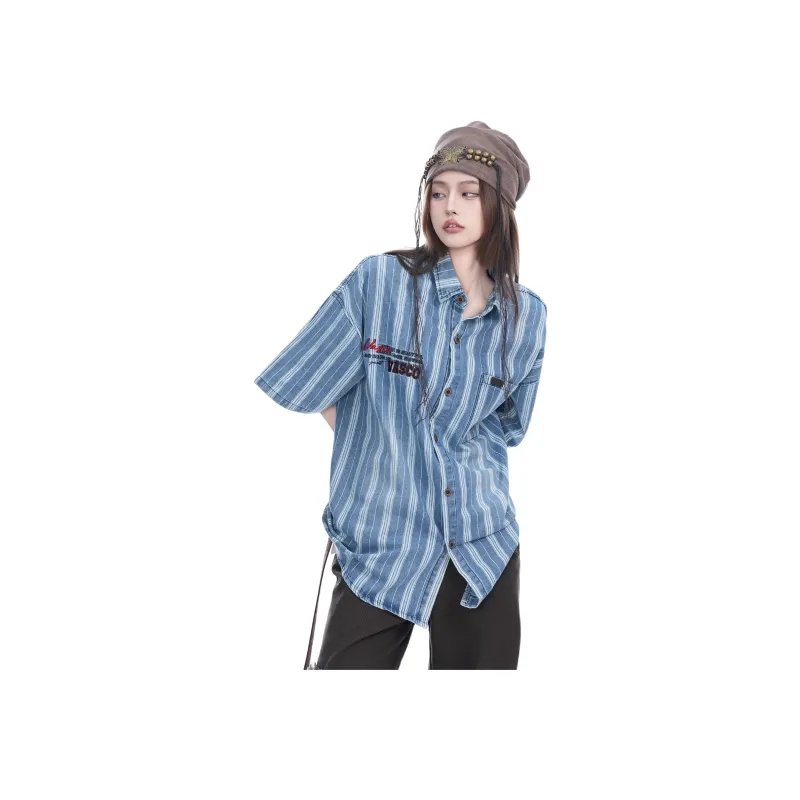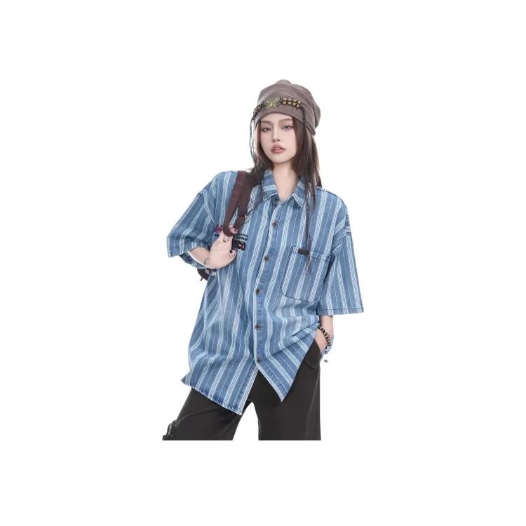 WAYHWEI Джинсовая синяя унисекс рубашка