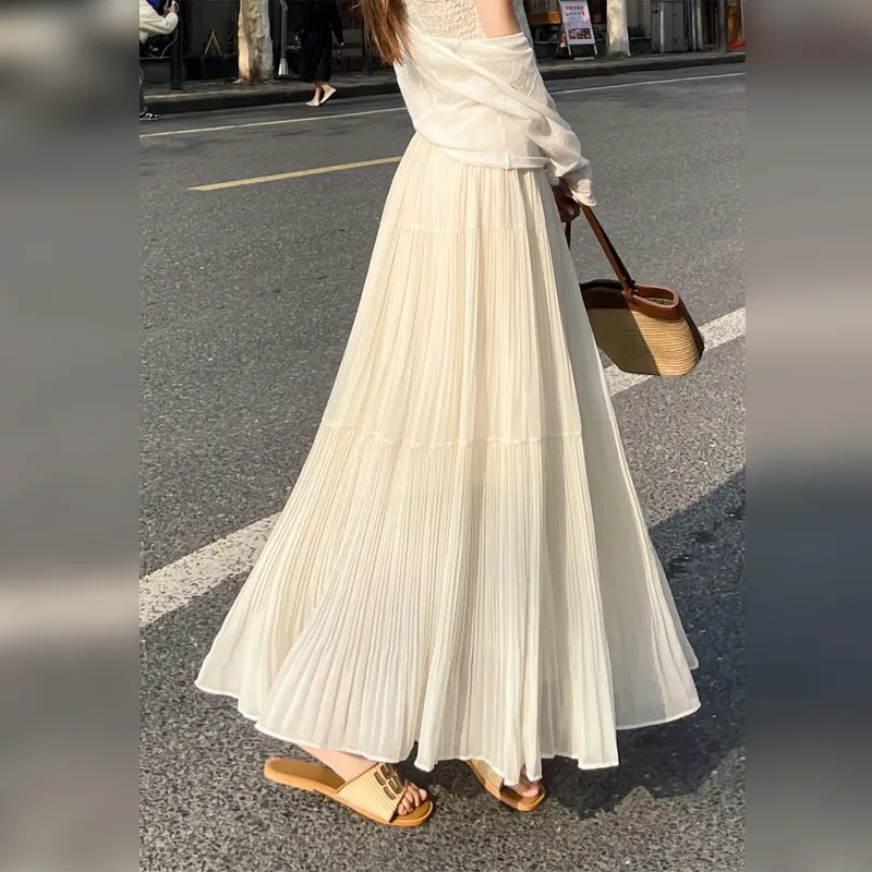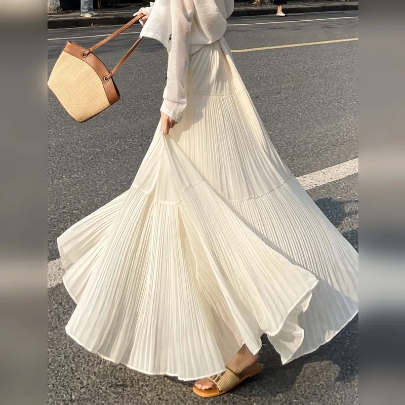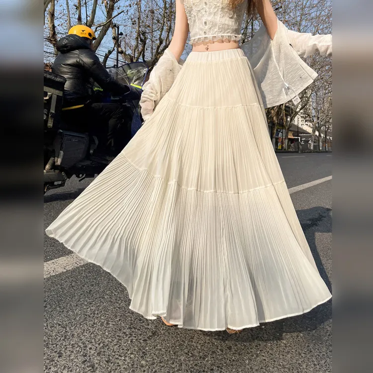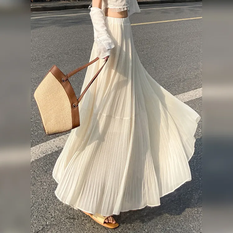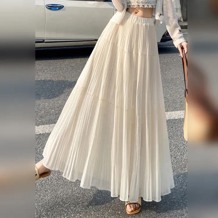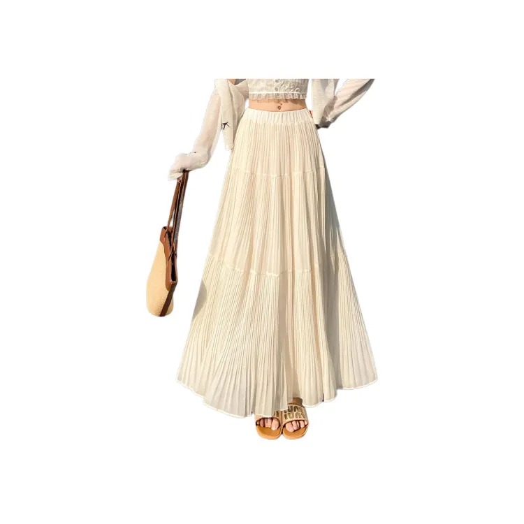 Wbwq Повседневный Длинный Юбка Женские Абрикос