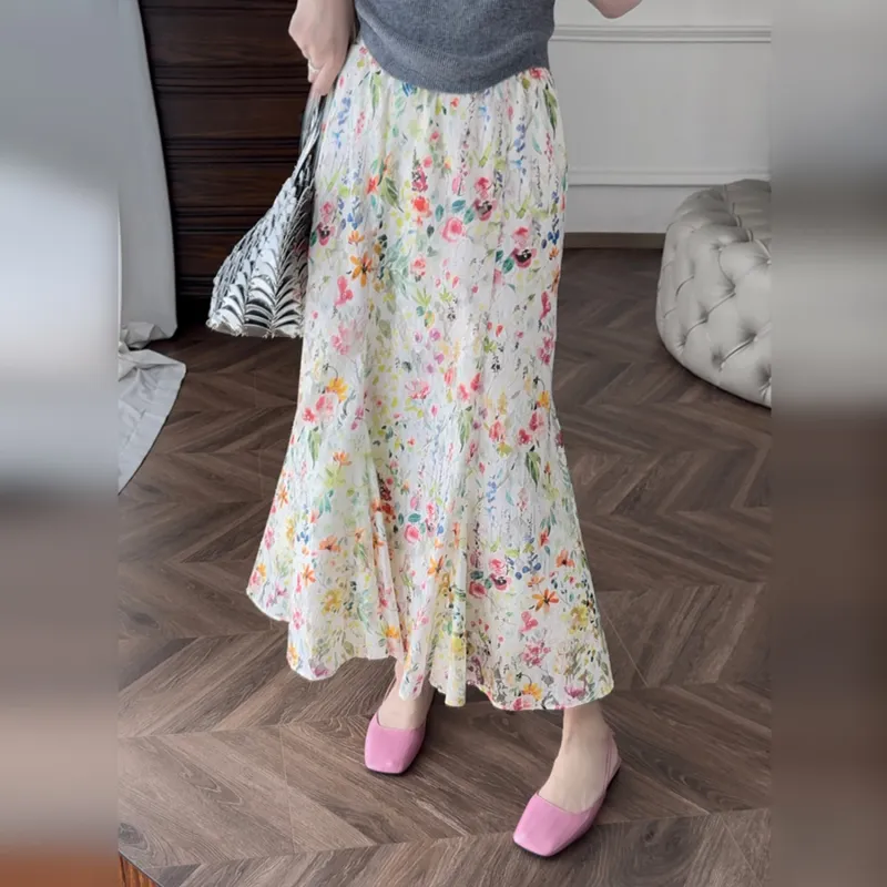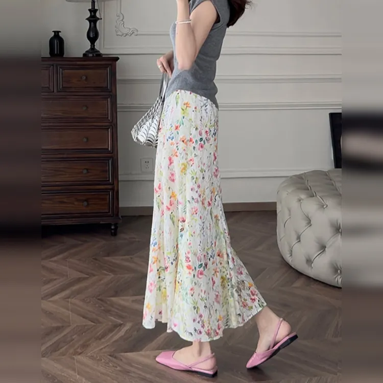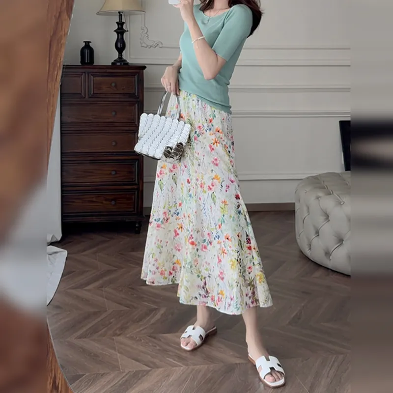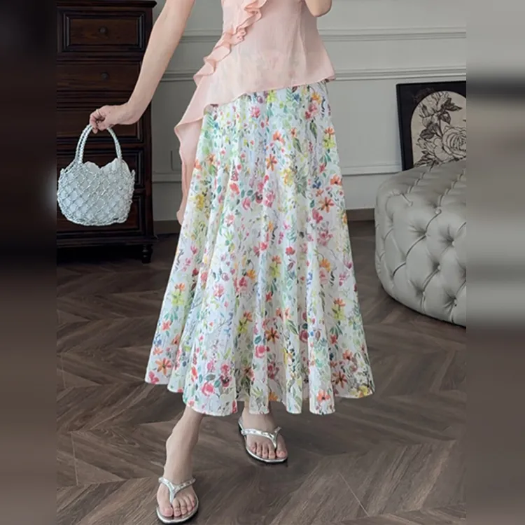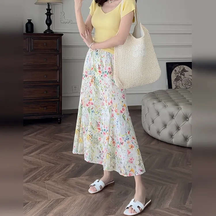 Wbwq Повседневный Длинный Юбка Женские Цветочный