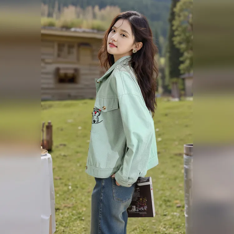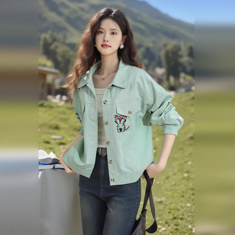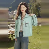 Wbwq Denim Куртка Женская Весенняя Аква Зеленая