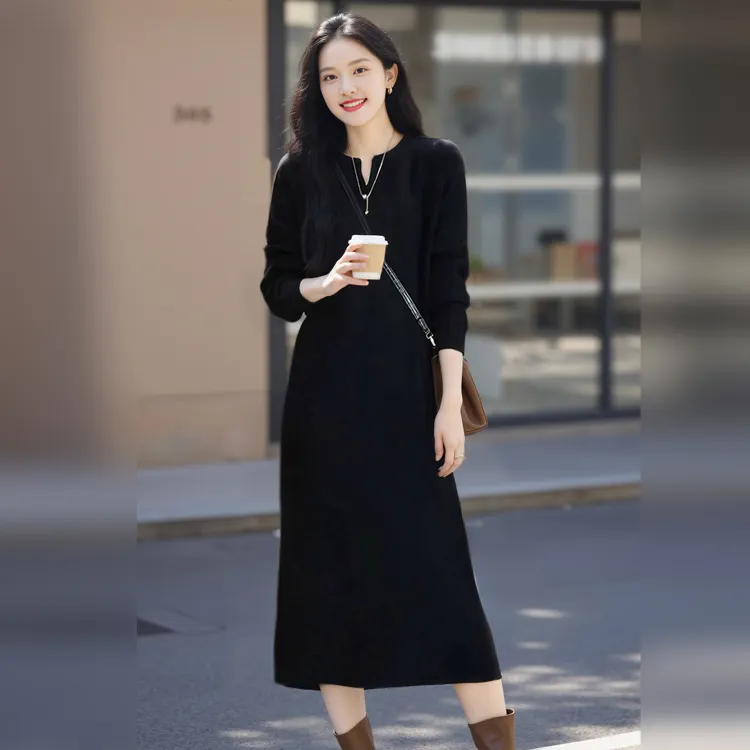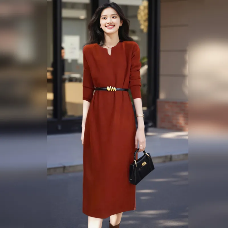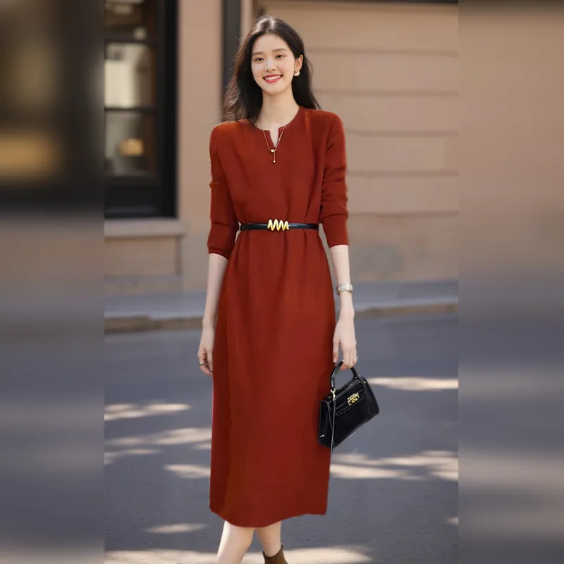 Wbwq Длинное платье с длинными рукавами женское