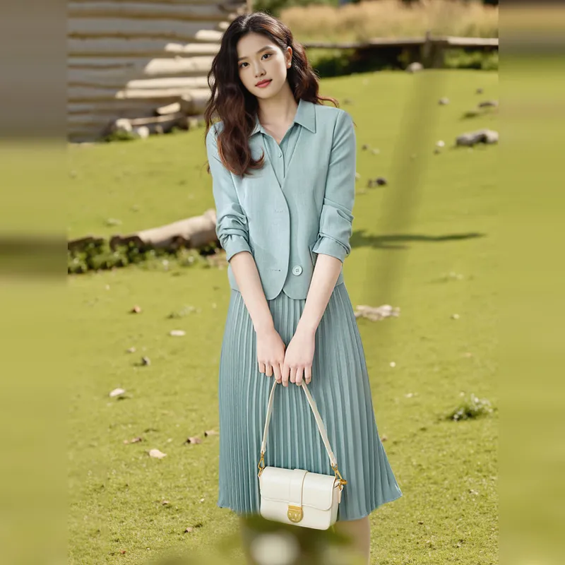Wbwq Комплект с юбкой Женские Озерный зеленый