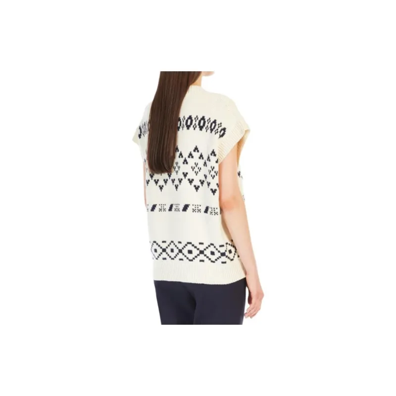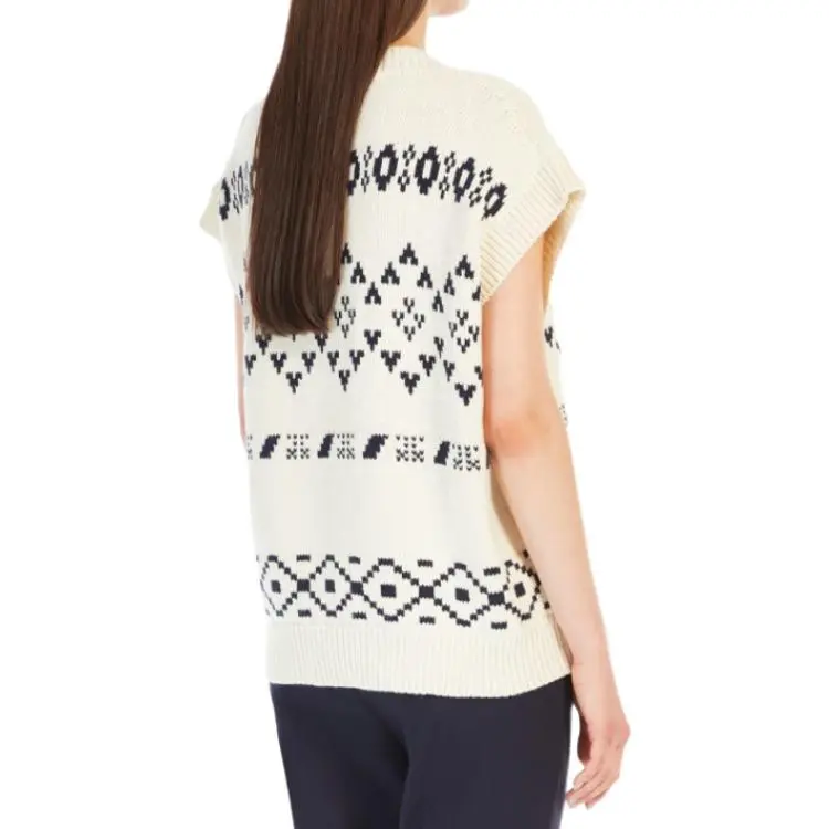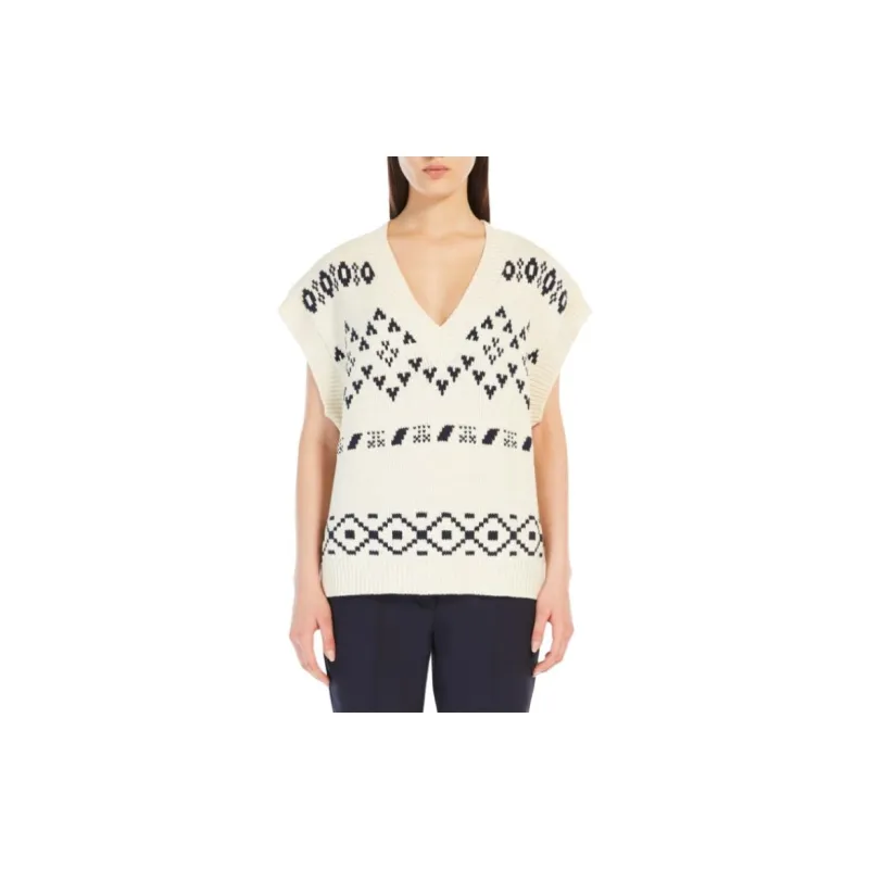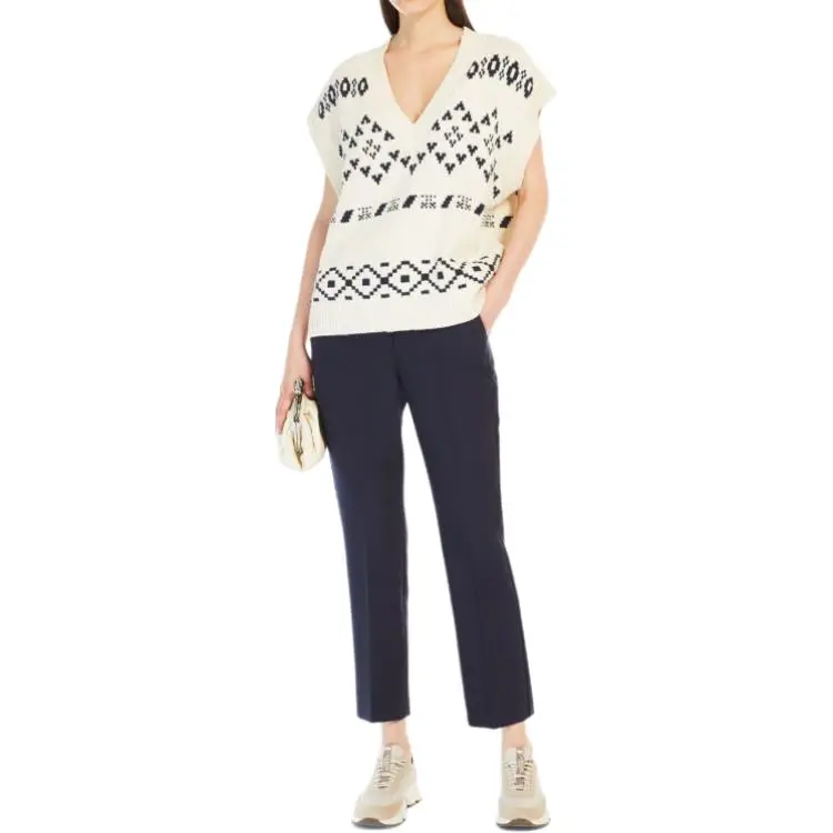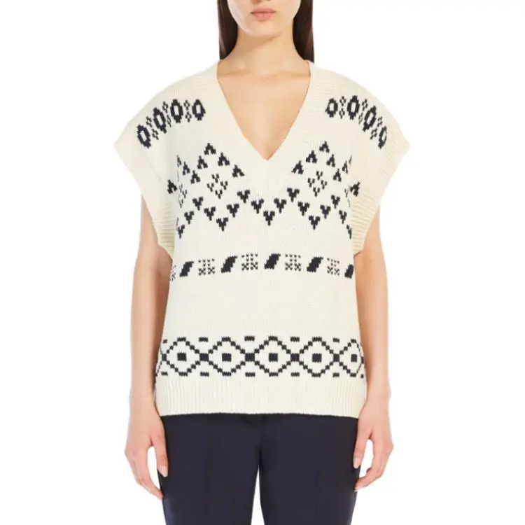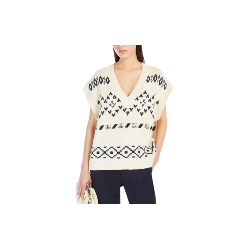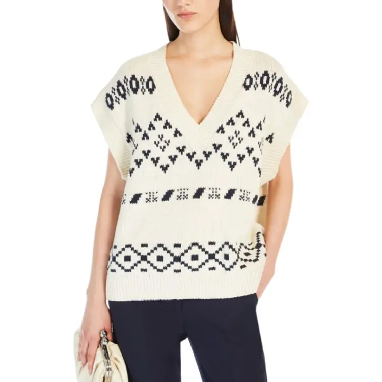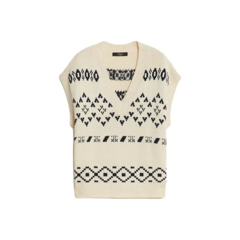WEEKEND MaxMara Todi Коллекция OVERSIZED Жаккард Хлопок Гилет Свитер Женские Бежевый