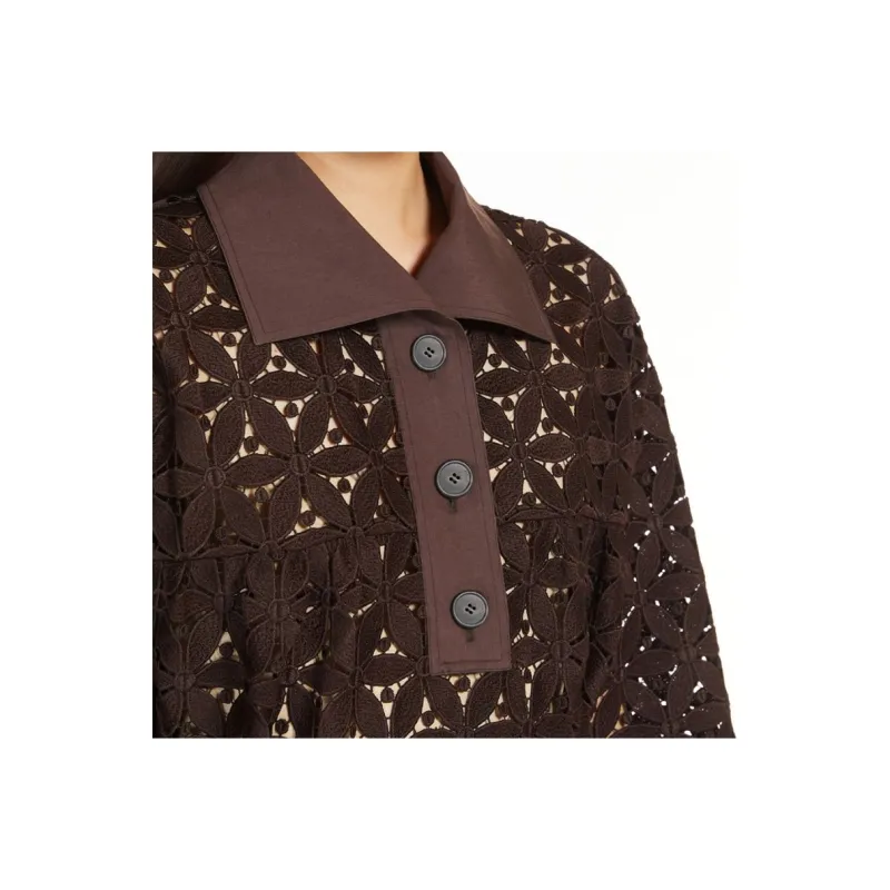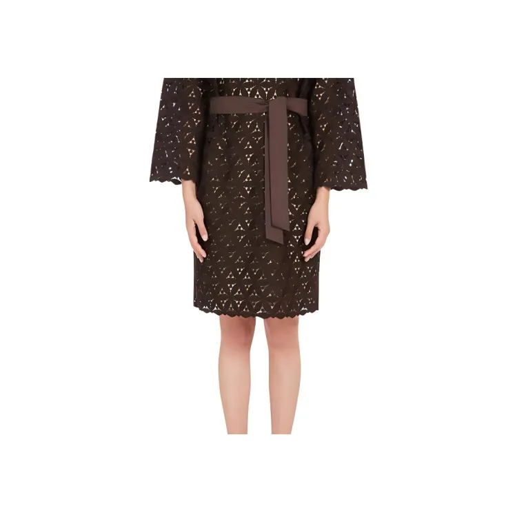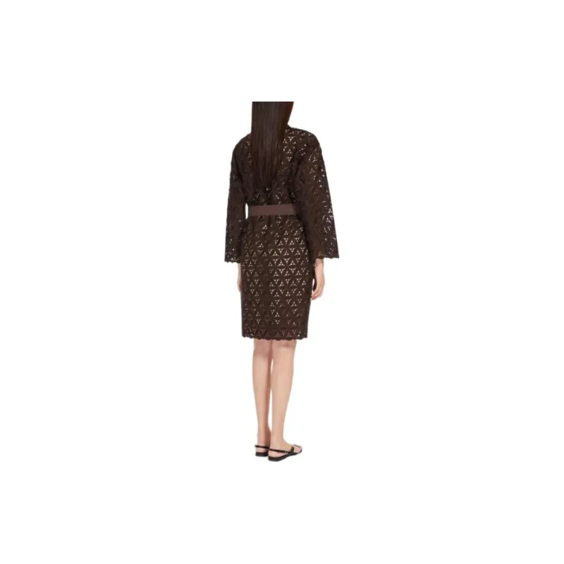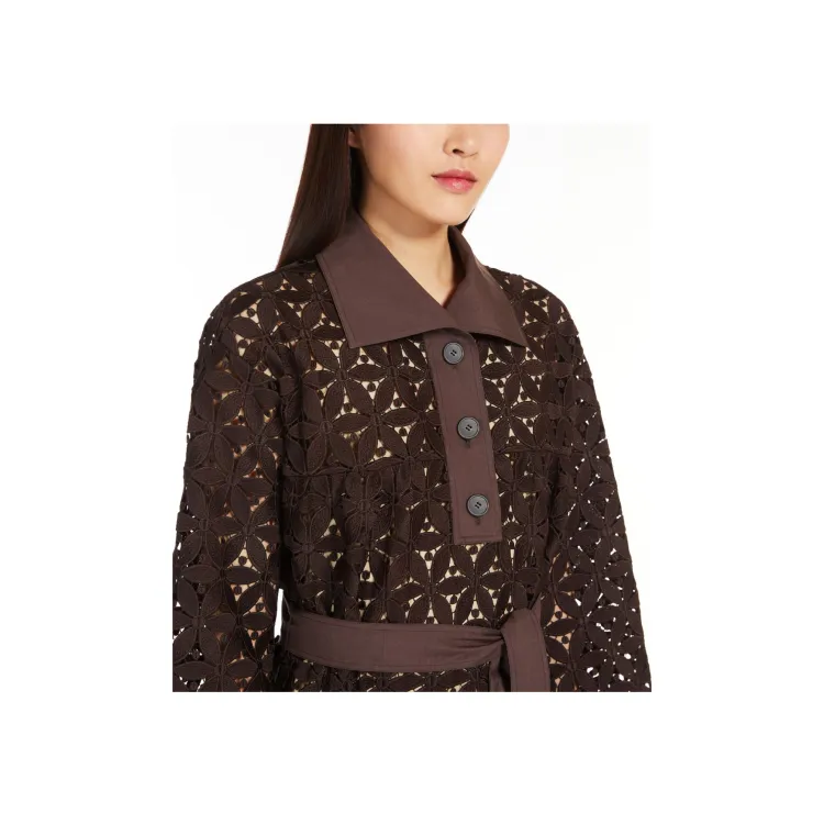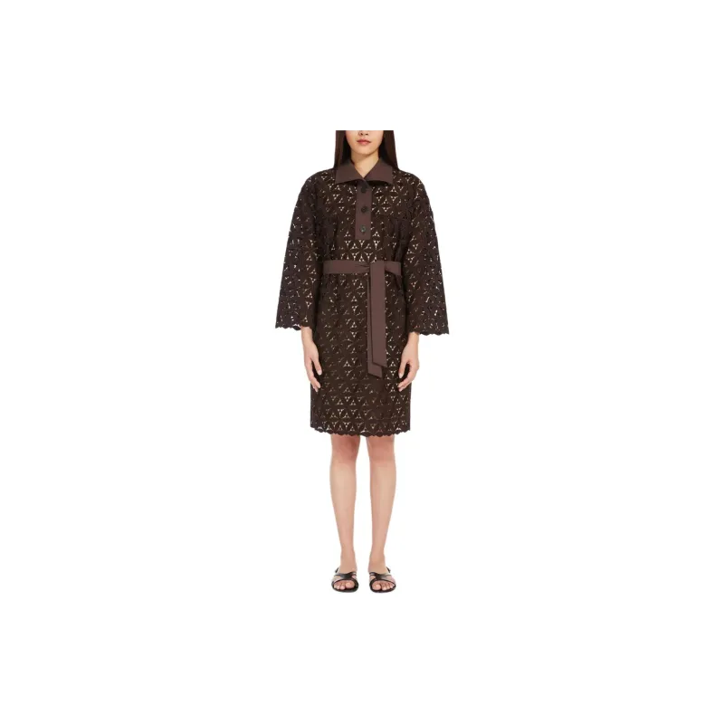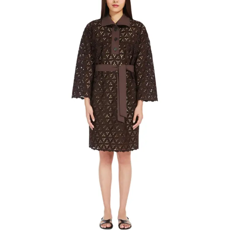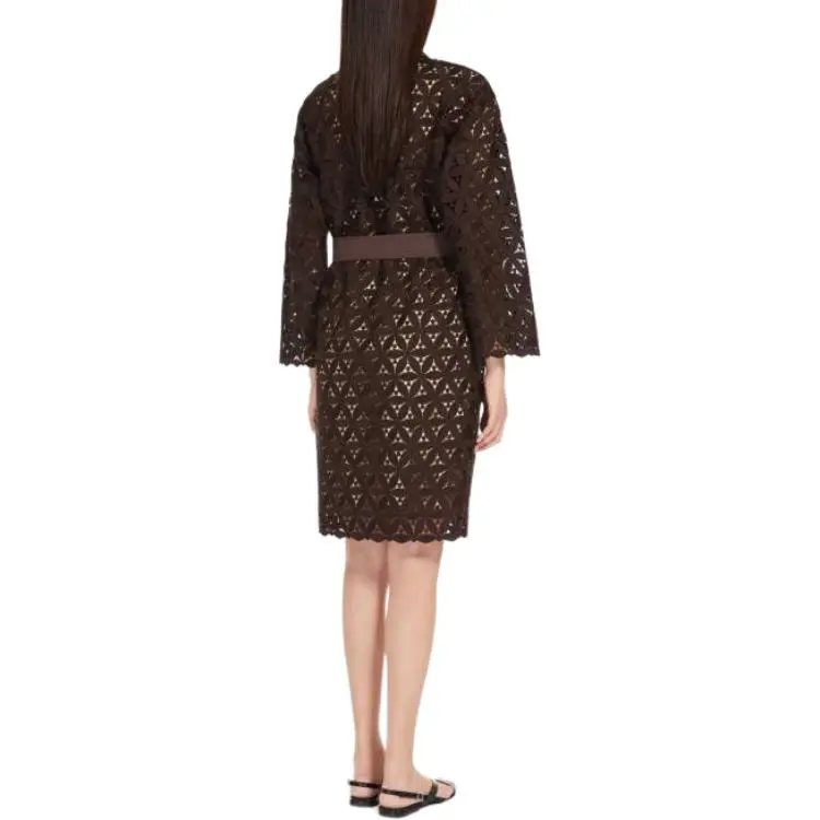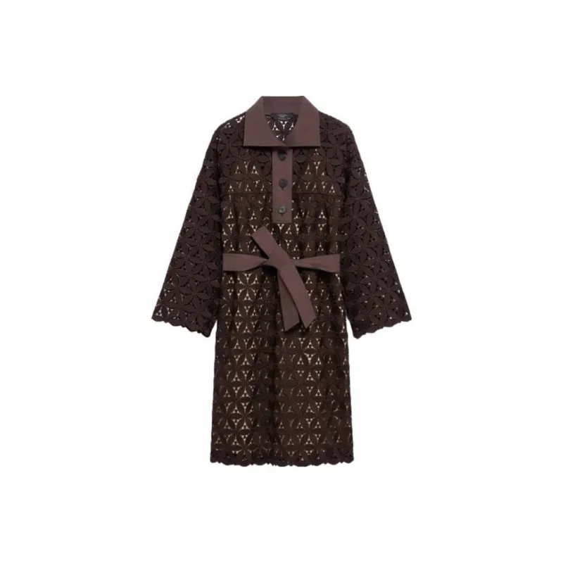 WEEKEND MaxMara Affori Коллекция Макраме And Поплин Платье Длинное с Длинными Рукавами Женское Платье Шоколадное