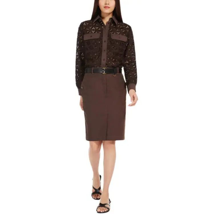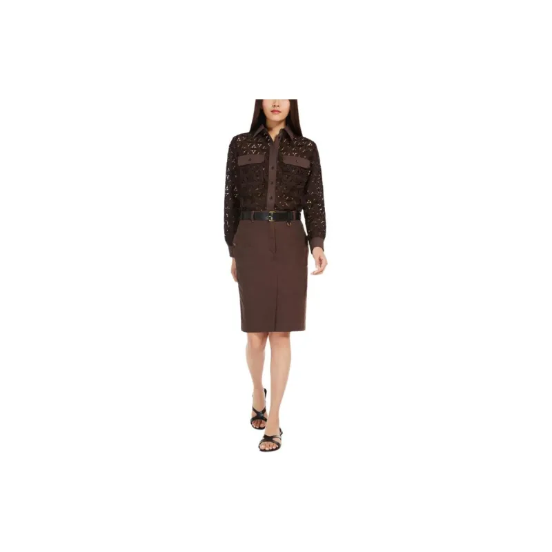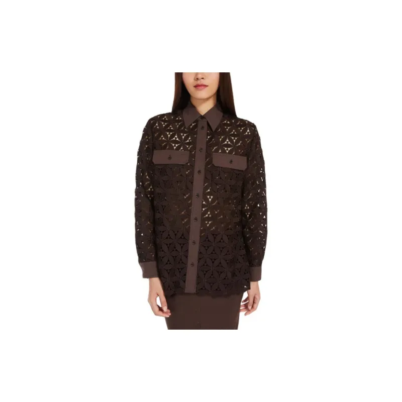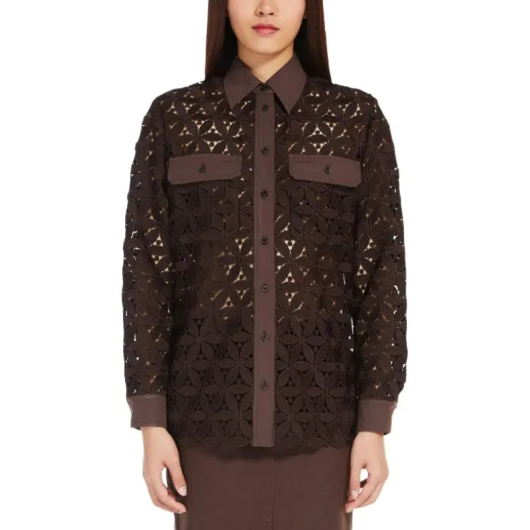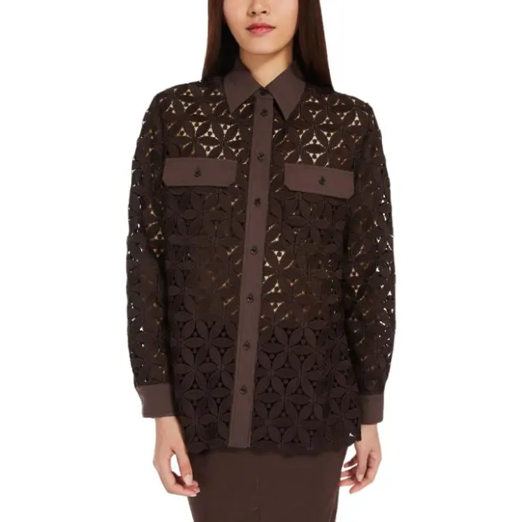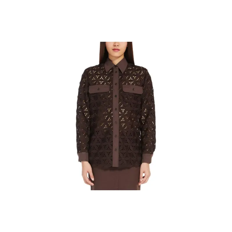 WEEKEND MaxMara Afona Коллекция Макраме And Поплин Рубашка Женские Шоколад