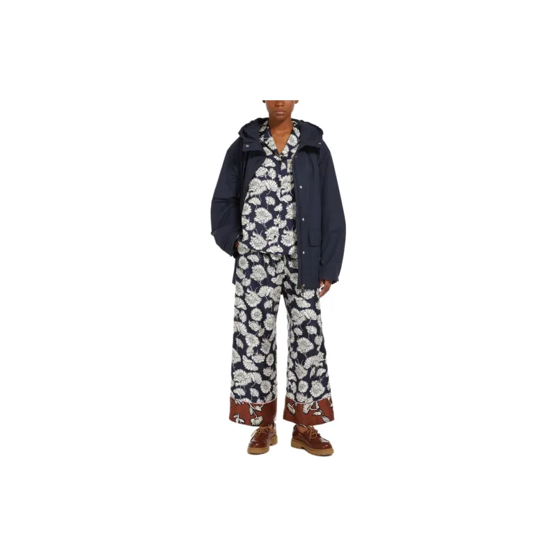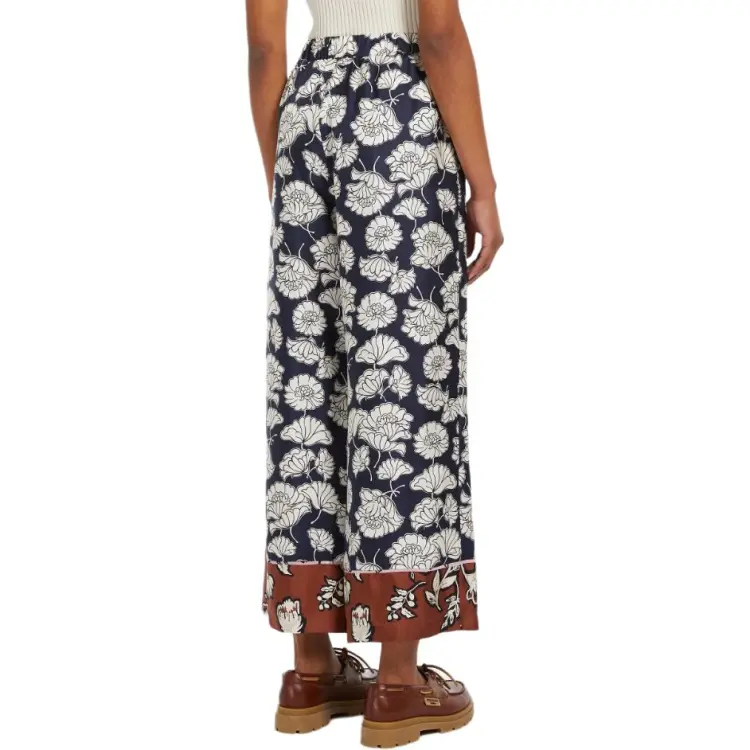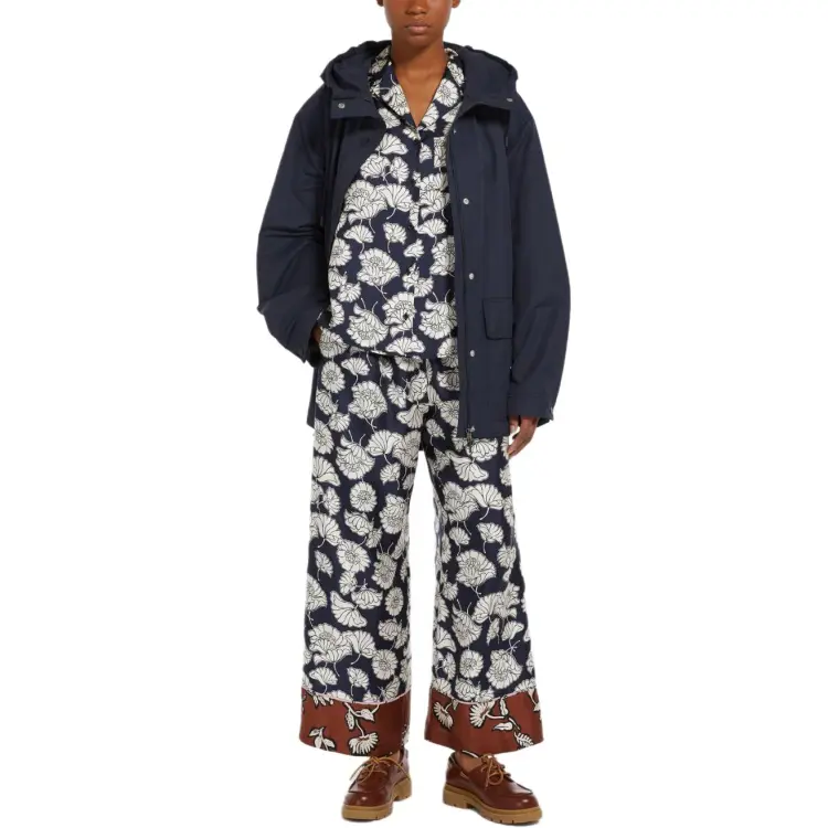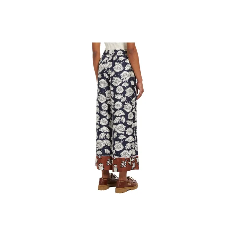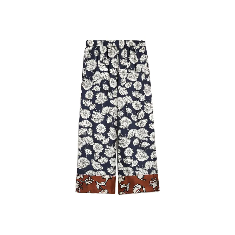WEEKEND MaxMara DIVO Коллекция Печатный Шелковый Пижамные Штаны Повседневные Брюки Женские Морской Синий
