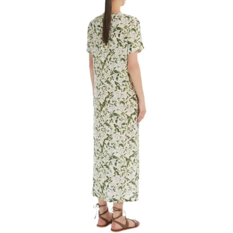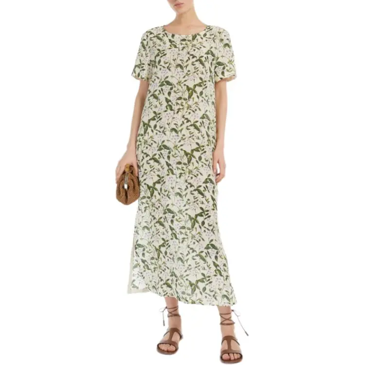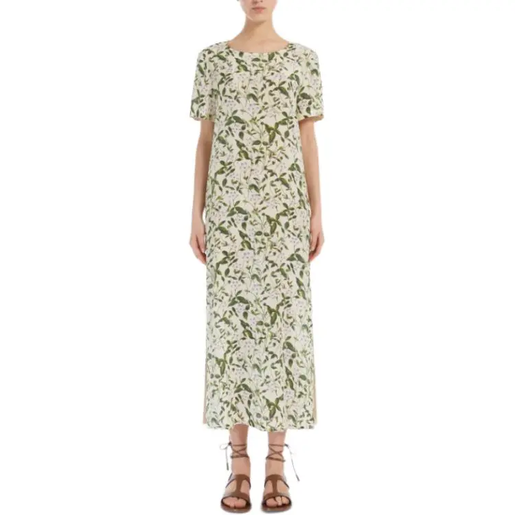 WEEKEND MaxMara Giudy Коллекция Длинное Печатное Шелковое Платье Короткие Рукава Женское Светло-Зеленое