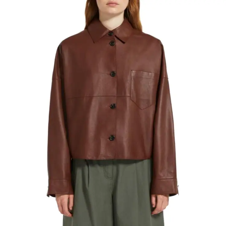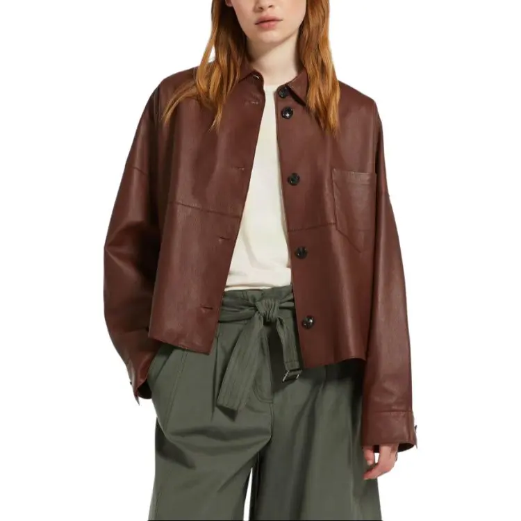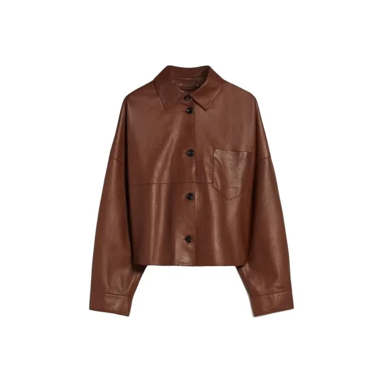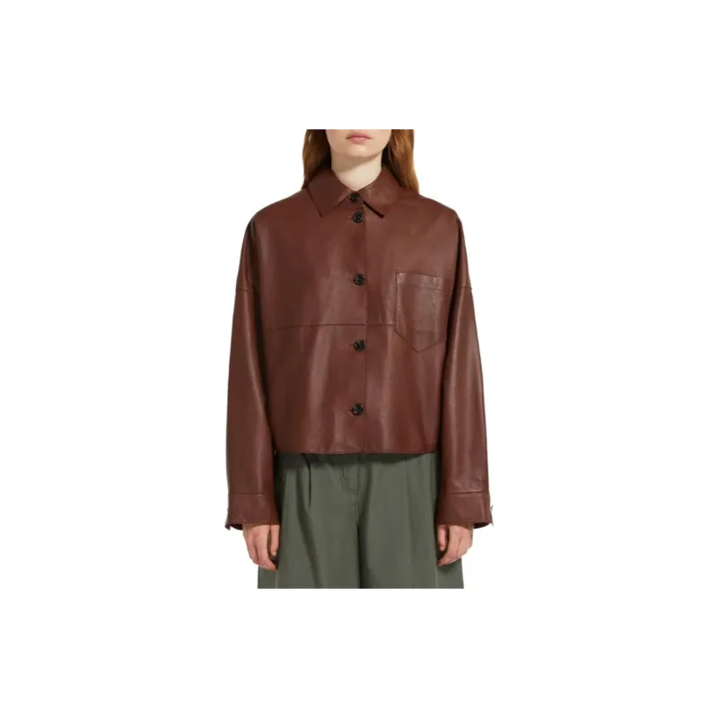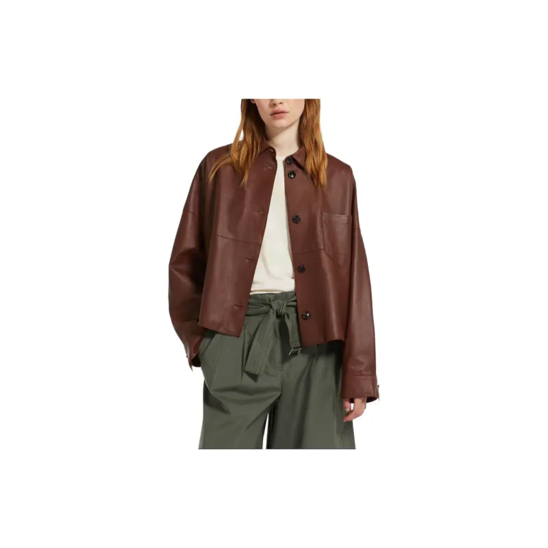 WEEKEND MaxMara Vortice Коллекция Одинарная кожаная куртка Куртки и пальто Женские Темно-коричневый