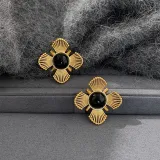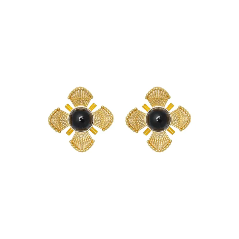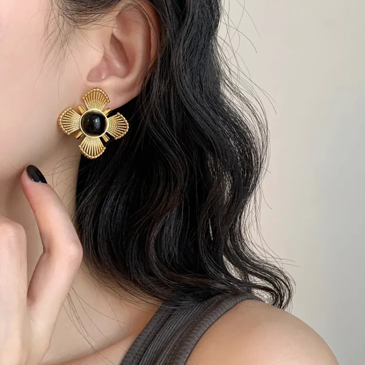 Тяжелый Черный Золото Песочный Вырез Цветочный Серьги-кольца 0014