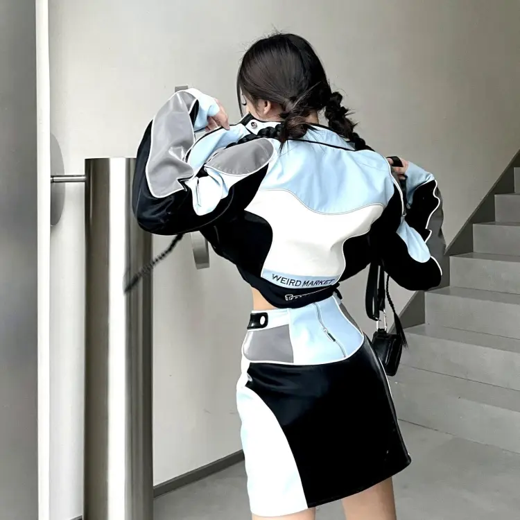 WEIRD MARKET Синий, Черный, Многоцветный Женские Короткие Пальто