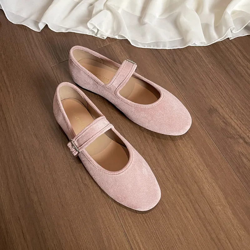 WEISHIBANGWEI Туфли Мэри Джейн с плоской подошвой 1 см женские розовые