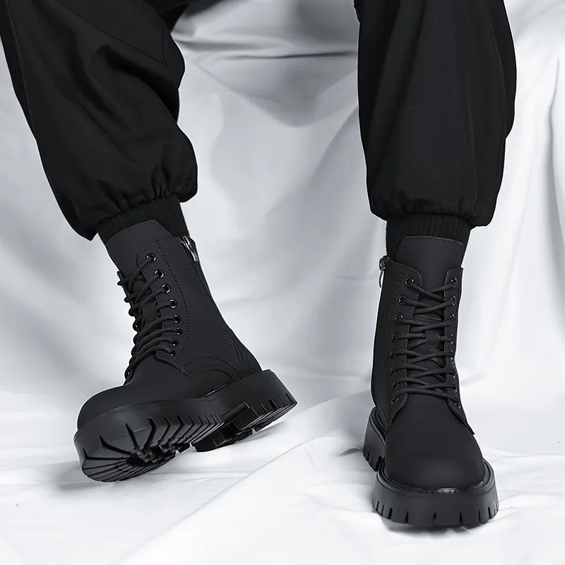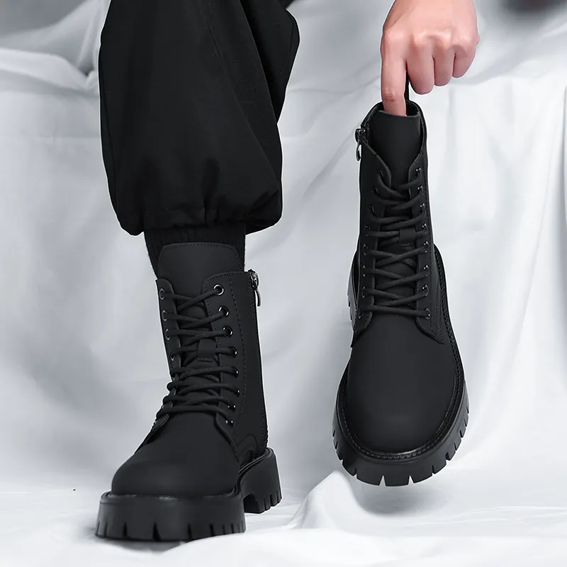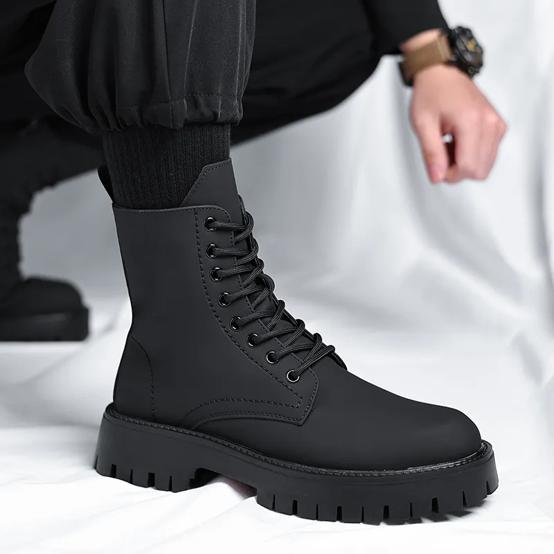 WEISHIBANGWEI Колено Высокая Мартин Ботинка Средний Каблук Мужской Черный