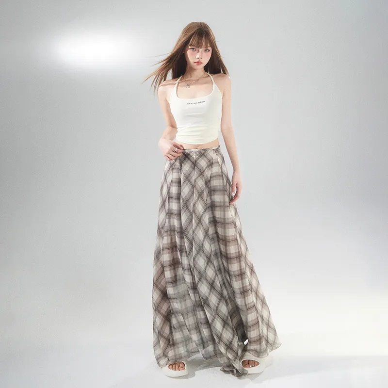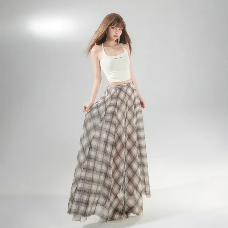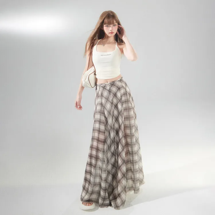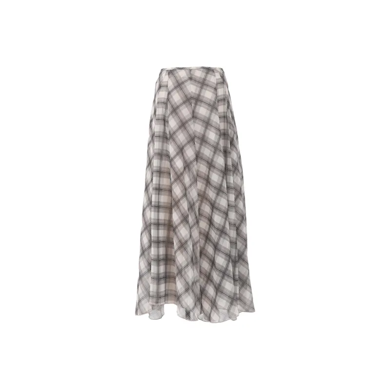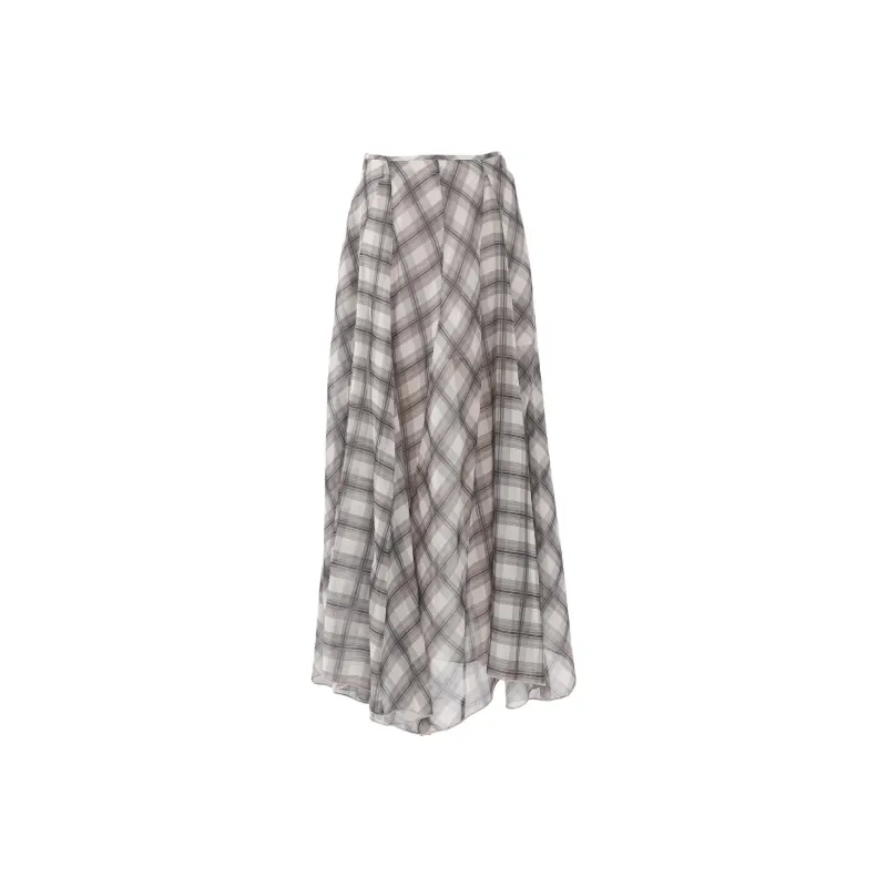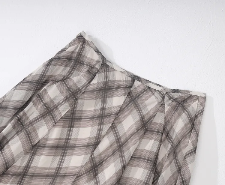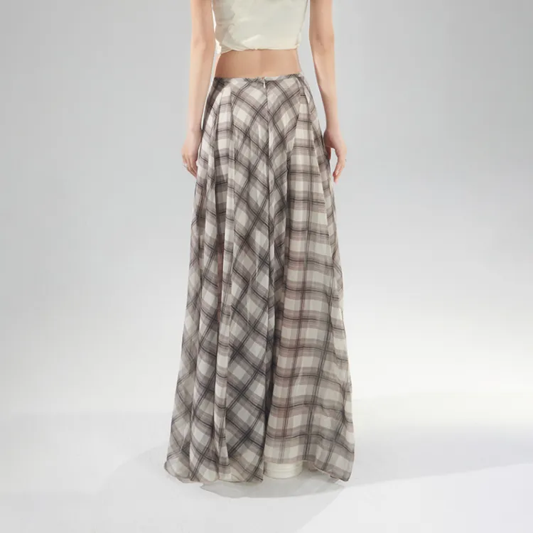 Wen Shan Повседневная длинная юбка женская коричневая в клетку