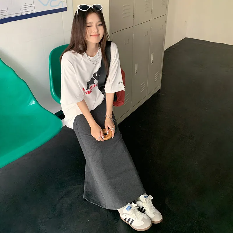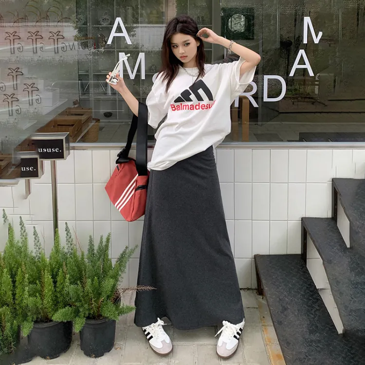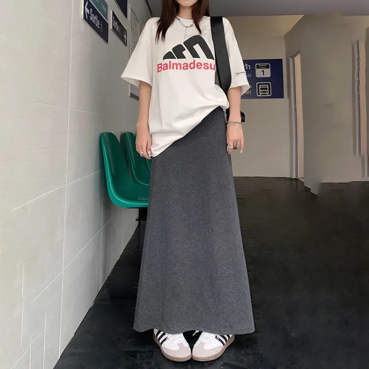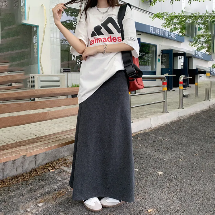 Wen Shan Повседневный Длинный Юбка Женская Темно-Серый