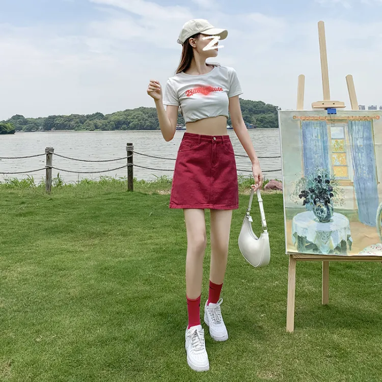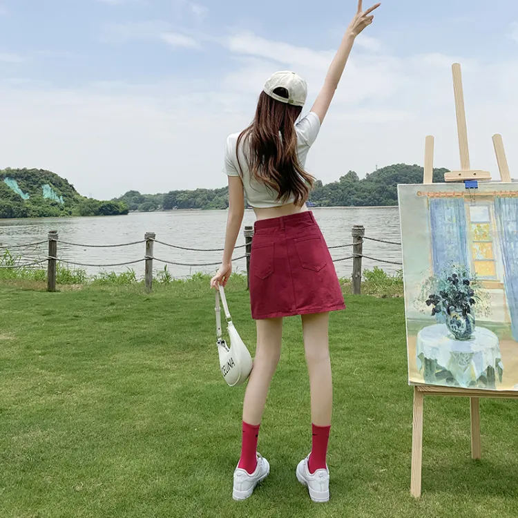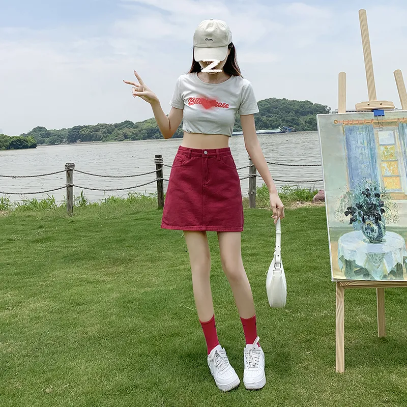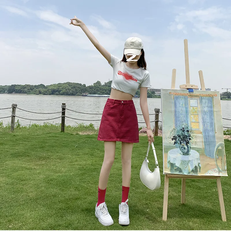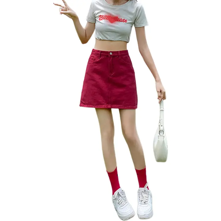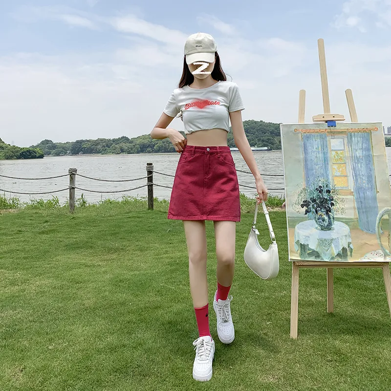 Wen Shan Джинсовые короткие юбки Женские Розово-красный